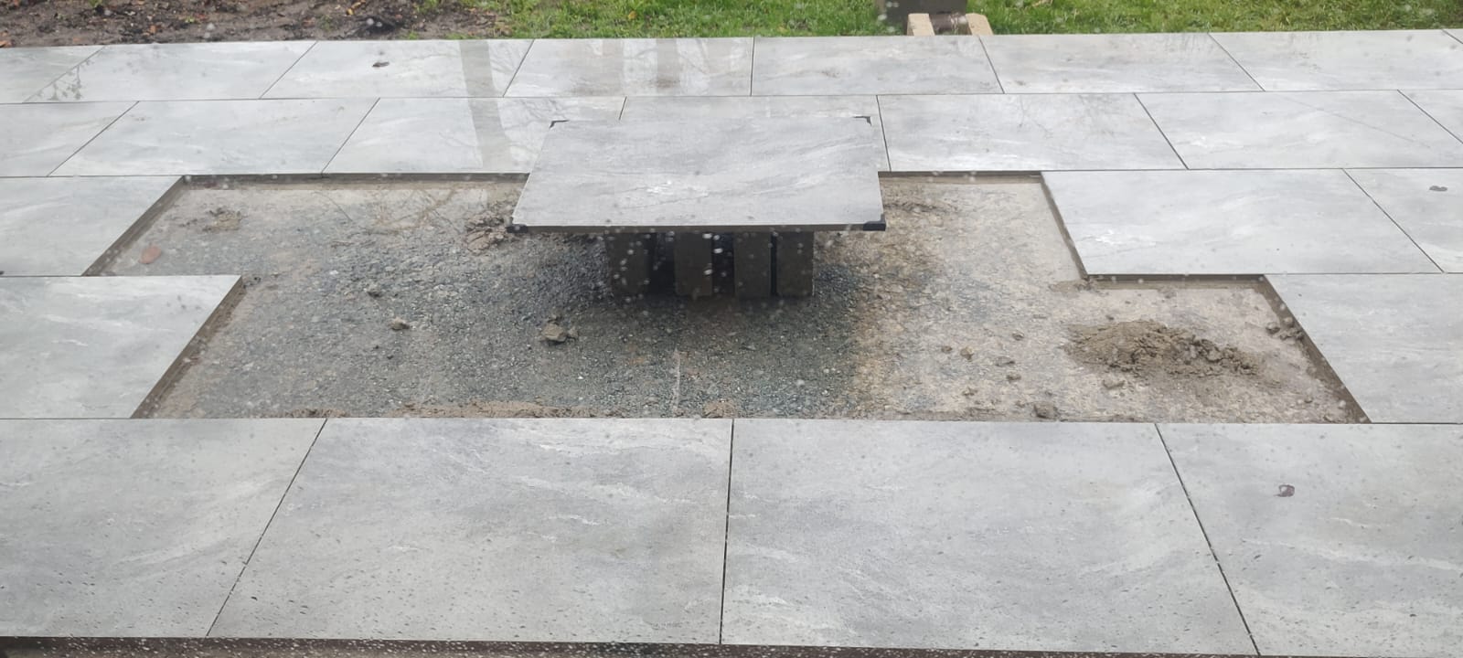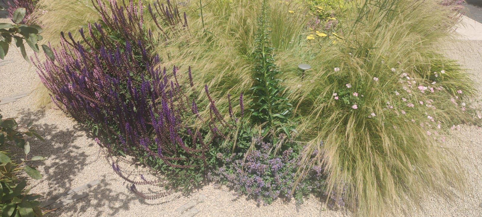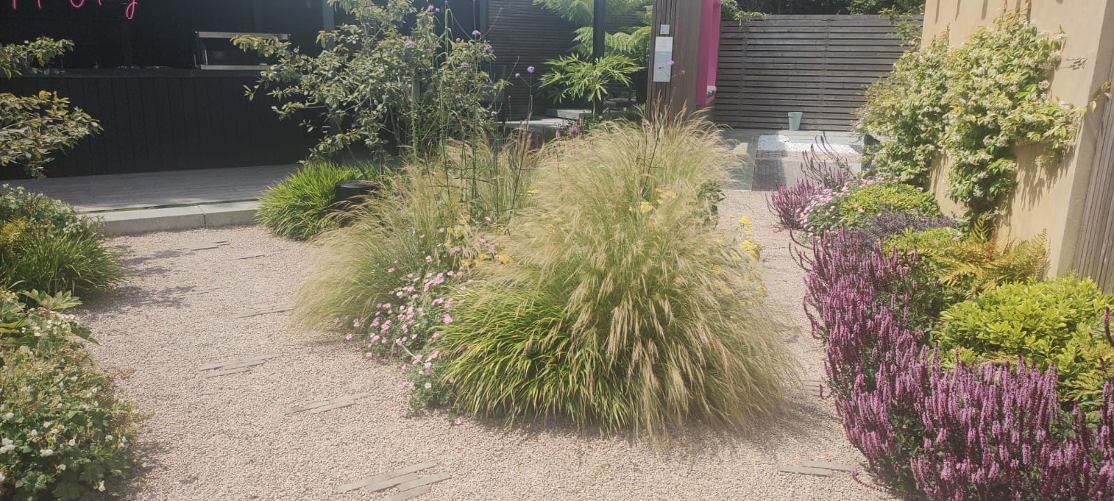 In a rush of ambition-over-practicality we saw, what we thought, looked like a really great idea to break up a large area of patio (see pics) with some grasses etc