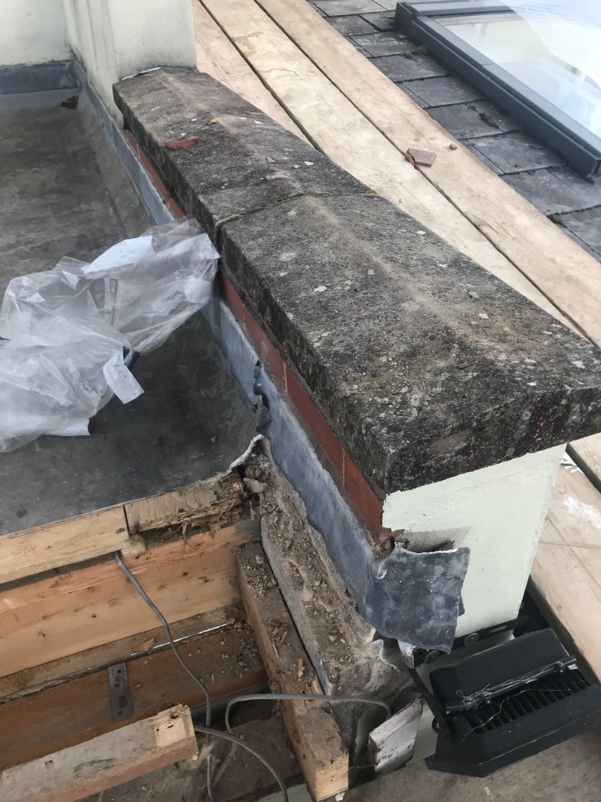 And a second question to the same area ( see pic nba22 e ) - i need to build on top of the parapet wall but there is a conservatory nest to it. Am I able to just remove the coping and internal side flashing and build block/block above?