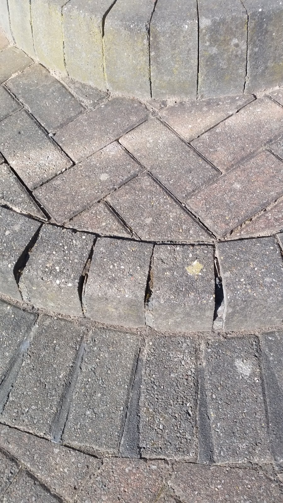 Hello experts. Outside our front door are two semi-circular steps. They were constructed from the same blocks (some cut down, to fit) that our paths were block-paved with. Really, they are just shells (or a shell) made from these blocks, which were then filled with sand, and the top layer of blocks set in place. Attached, there is a photo of these steps, which is better than a verbal description.