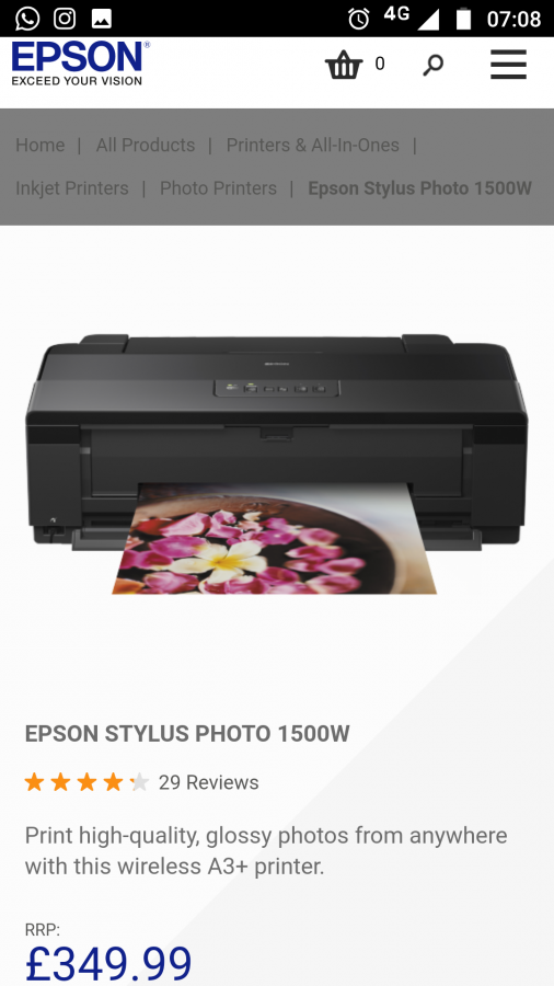 The printer I'm using is an Epson Stylus Photo 1500w so by no means a cheap or incapable printer.