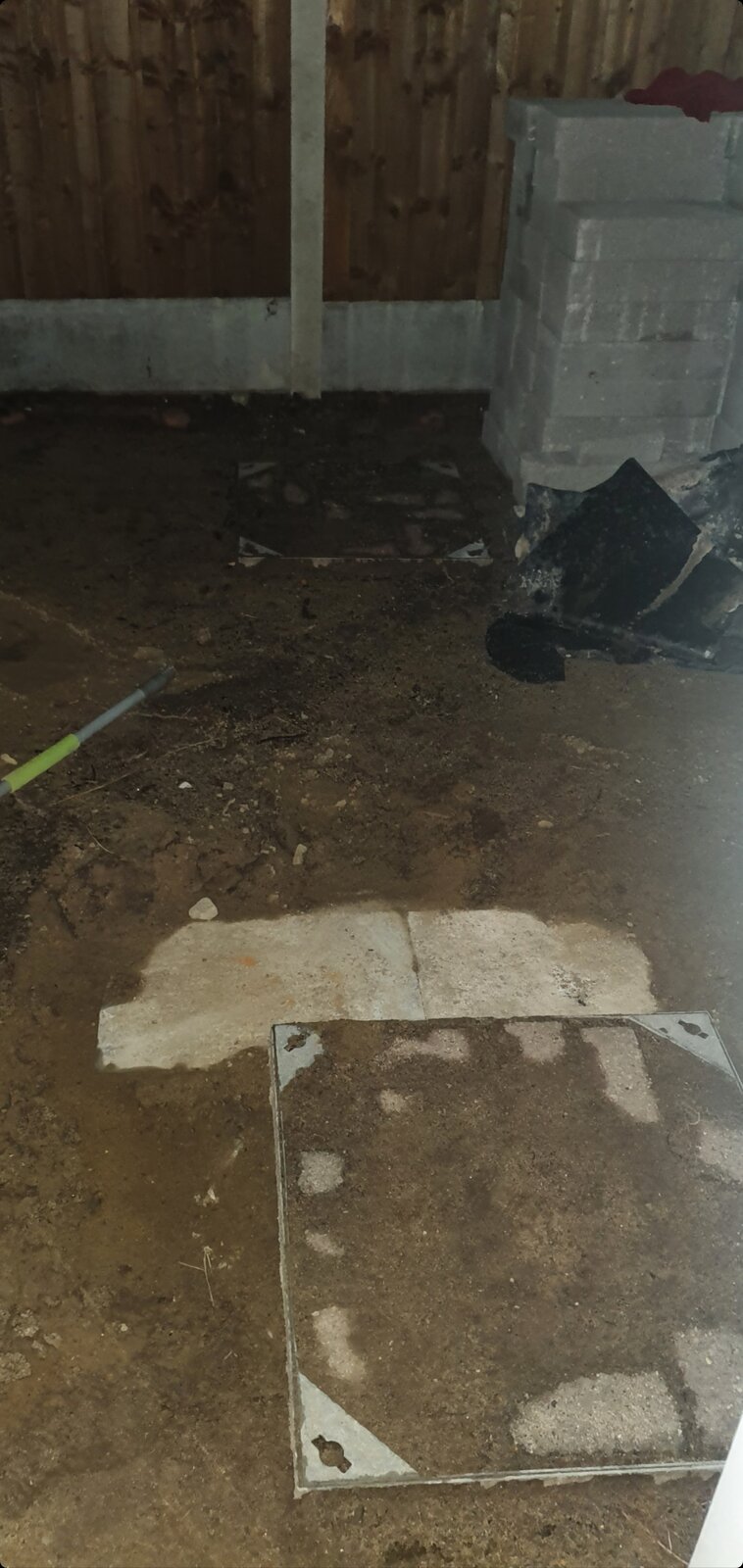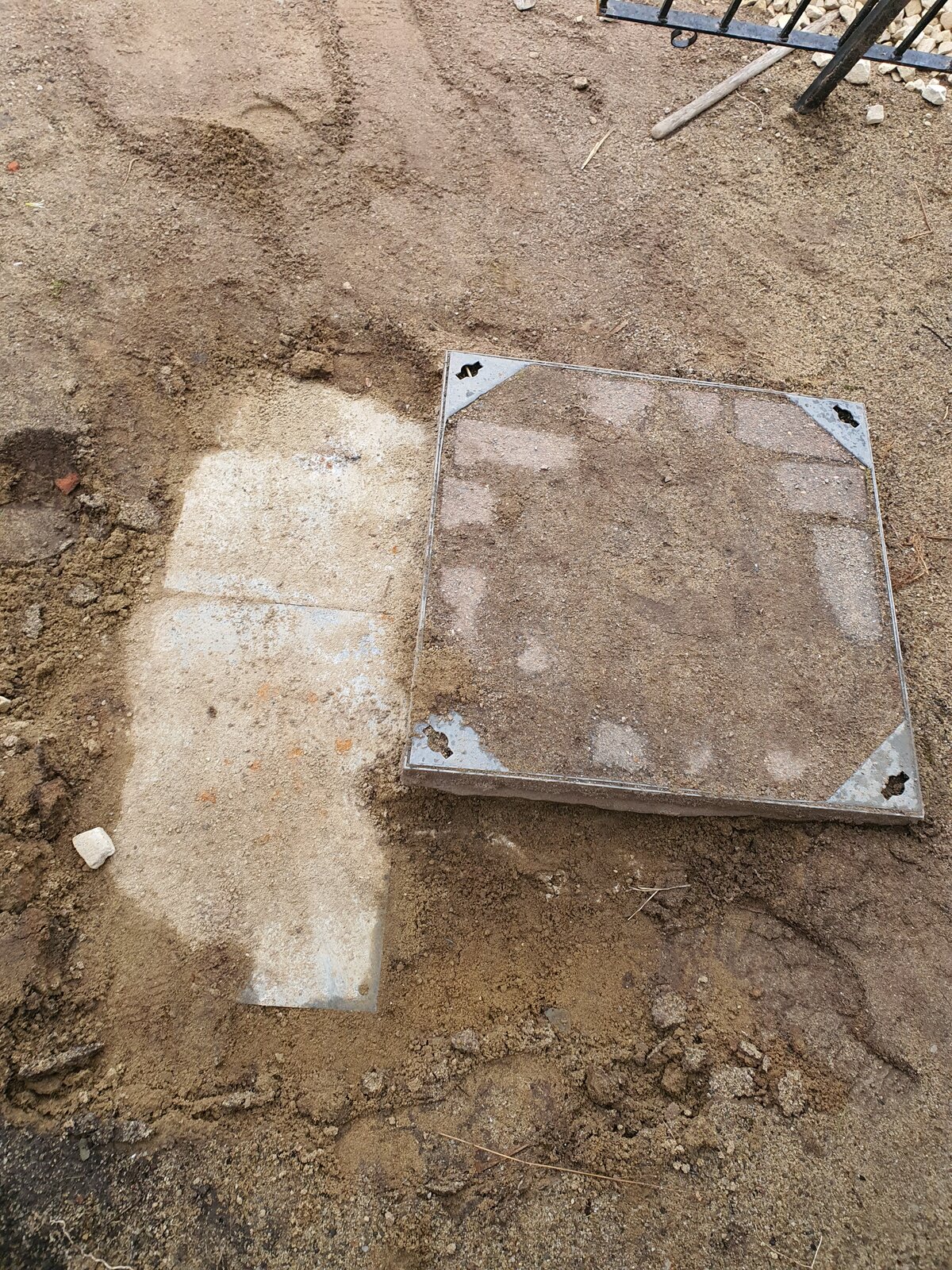 I'm laying down some tiles in my back garden. There are 2 inspection chambers that are close to each other and slightly angled compared to the house.