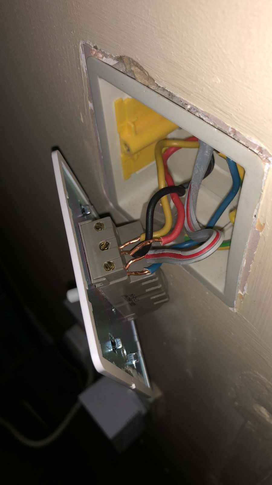 I've got a variety of wires. 2 red, yellow, black, blue, and a thick grey wire with a red line. I'm going to go back to Homebase, because the dimmer doesn't allow the L1 screw to tighten or loosen, and I may get a testing pen too.