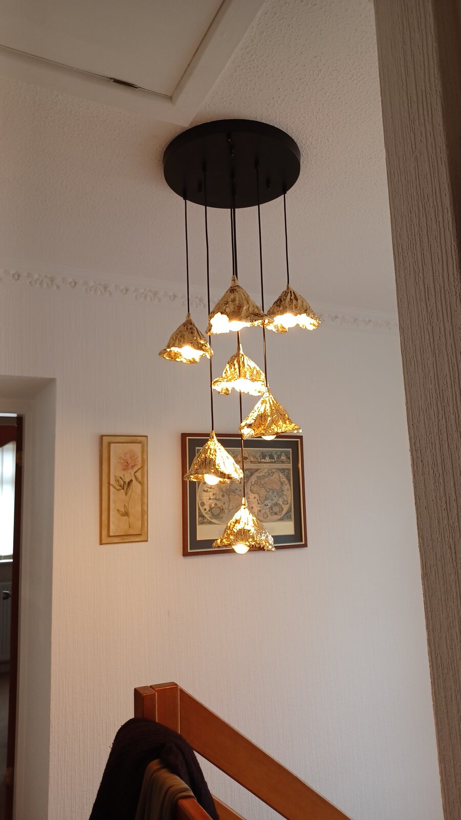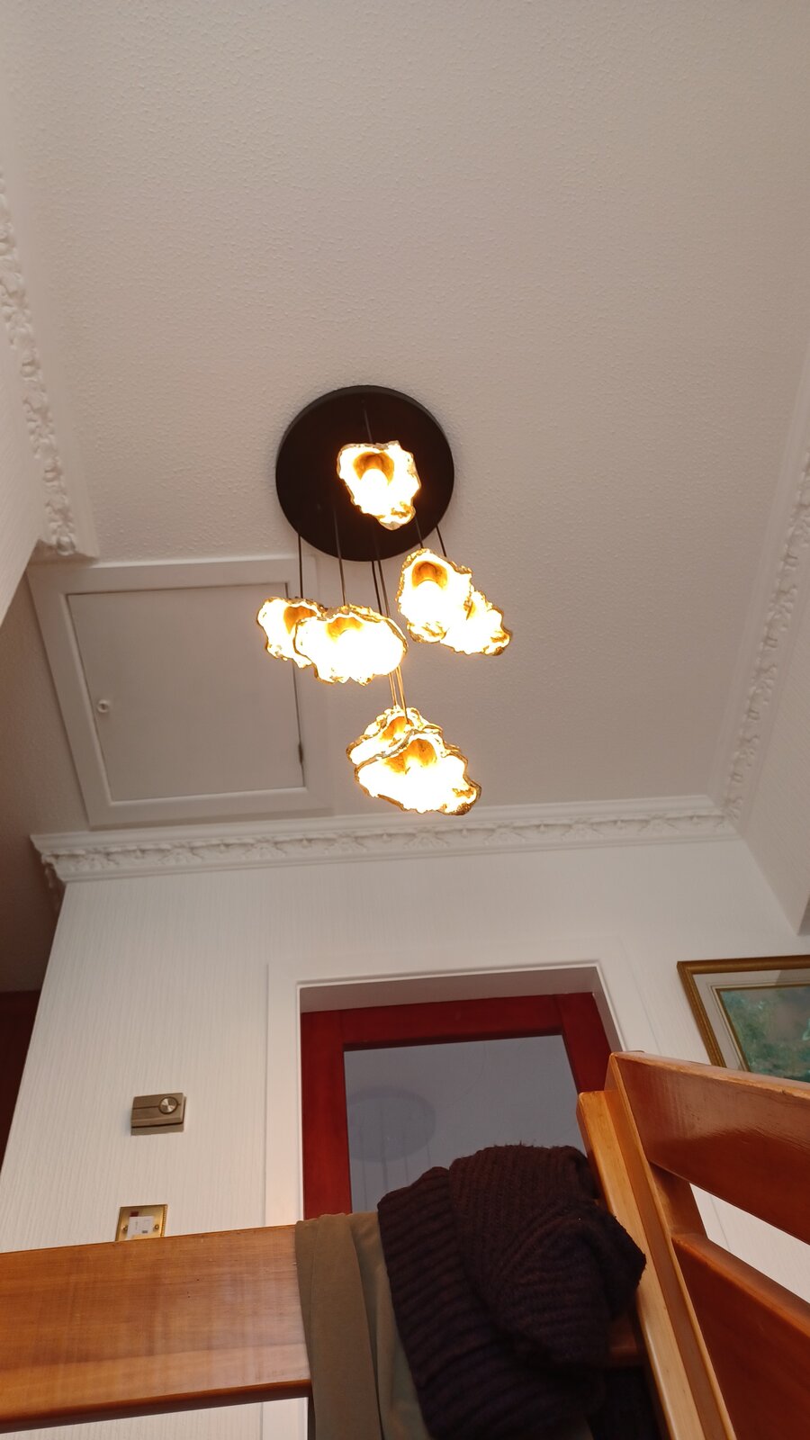 The other half has this chandelier which wants hanging. Replacing another chandelier.