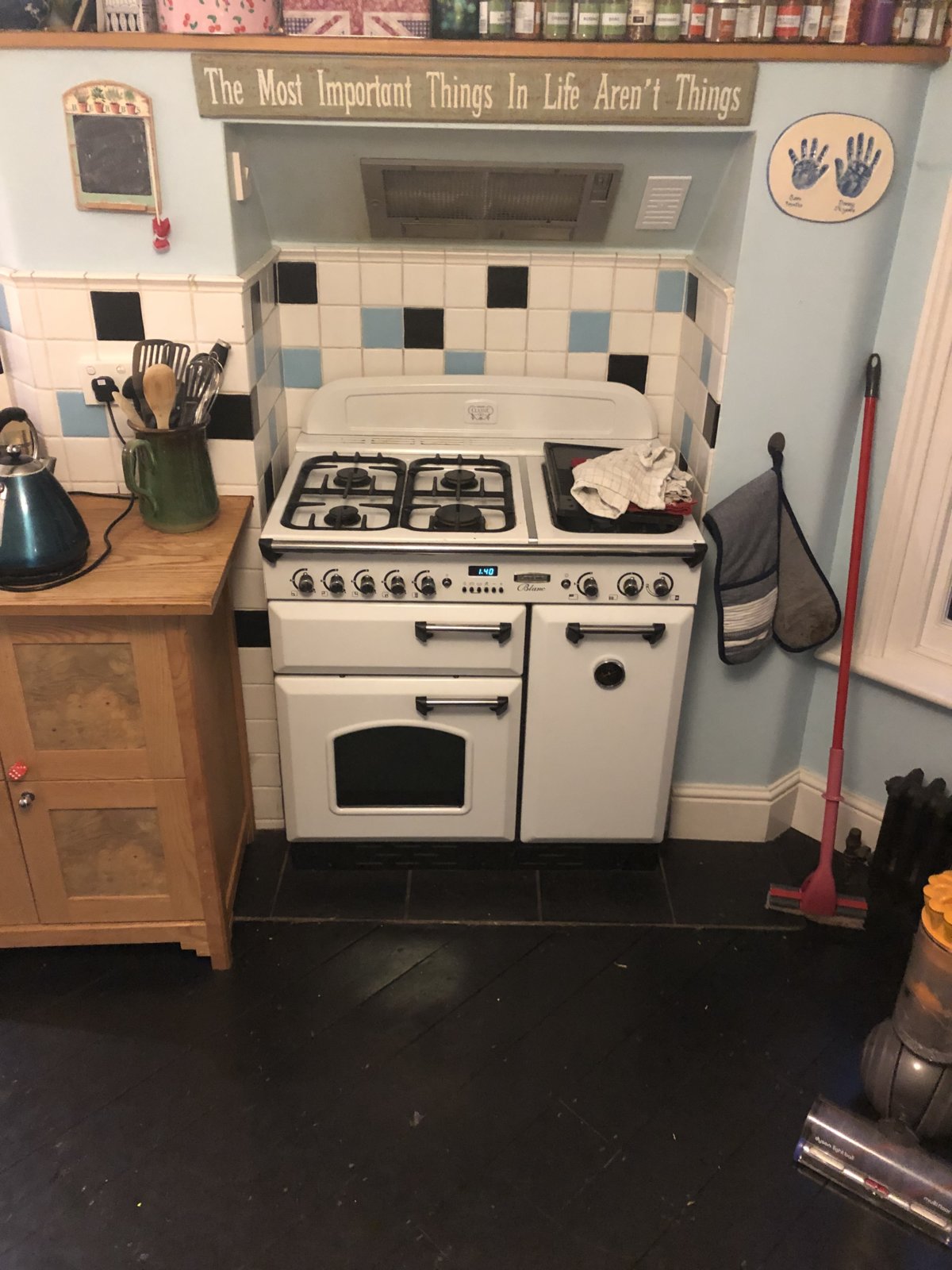 I'm looking to get a new gas/electric range. For now we're planning on leaving the kitchen as is. I also don't want to move the current cooker (positioned in old fireplace) until the new one is here if you see what I mean.