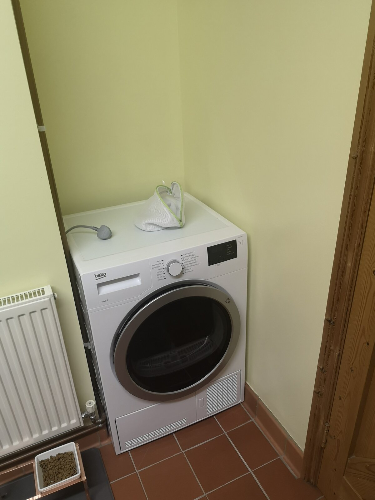 The alcove is the perfect size for our condensing tumble dryer, which I have piped to discharge into the drain below.