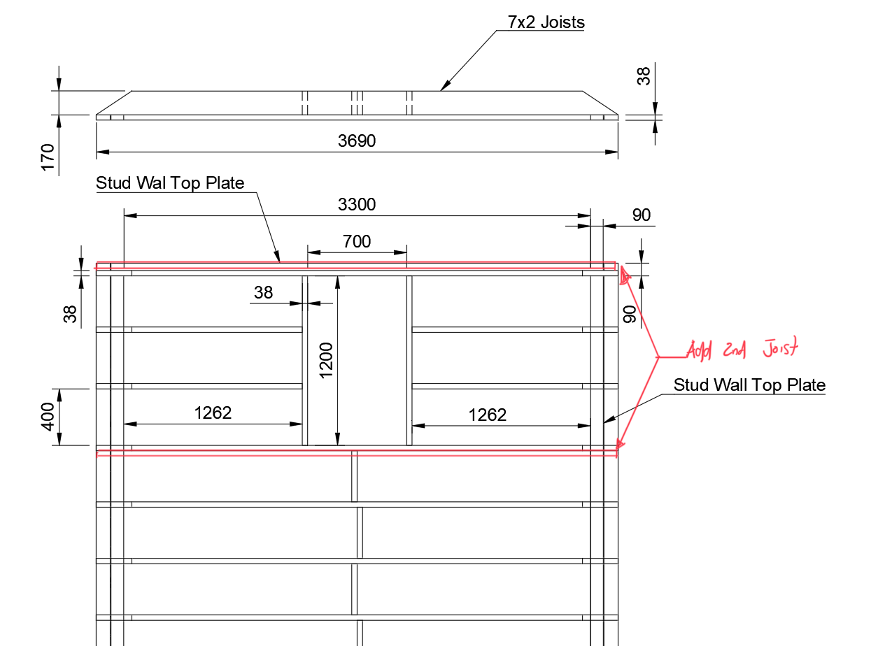 I am converting my concrete fabricated garage and am going to use 7x2 joists but I need to install a loft ladder for access but am worried about how its going to effect the joists I have attached a drawing of my plans if you could give me some feedback on how I can improve this or if its even possible.