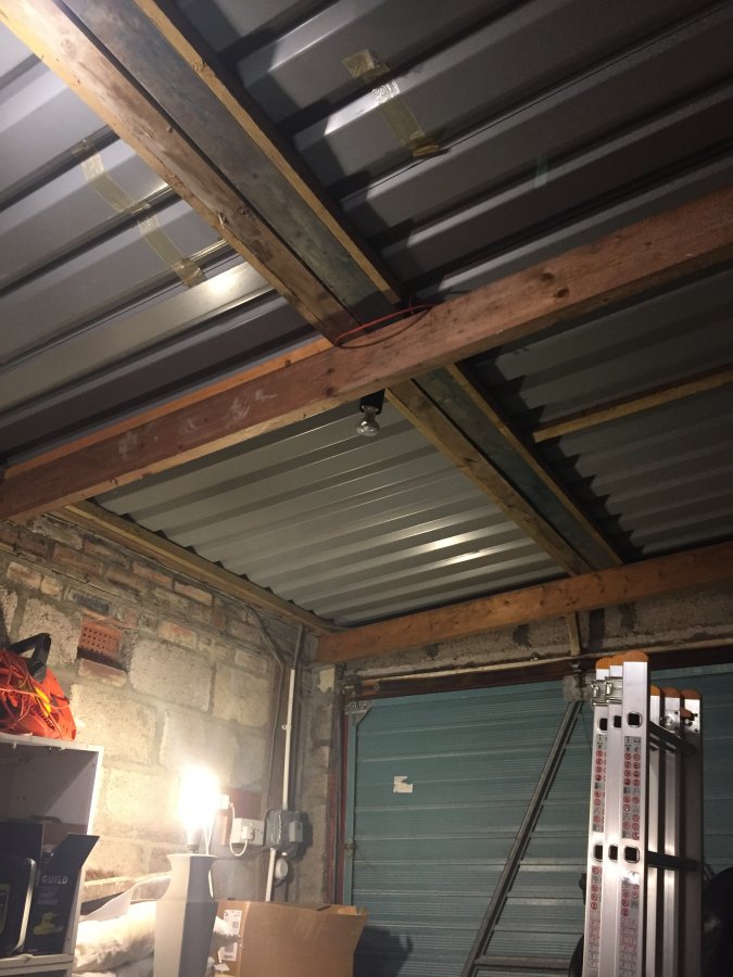 I'm in the process of taking out the garage door and replacing with timber frame clad on outside and double glazed window. I wil batten the walls with dpm between the breezeblock wall and the battens and then put in rockwool/earth wool before using osb or ply but am stuck as to what to do with the roof?!? It's corrugated metal with ventilation down one side. How do I insulate it and stop condensation. I live in Oban wet and cold winters. All help advice greatly appreciated. I have attached a photo. Cheers