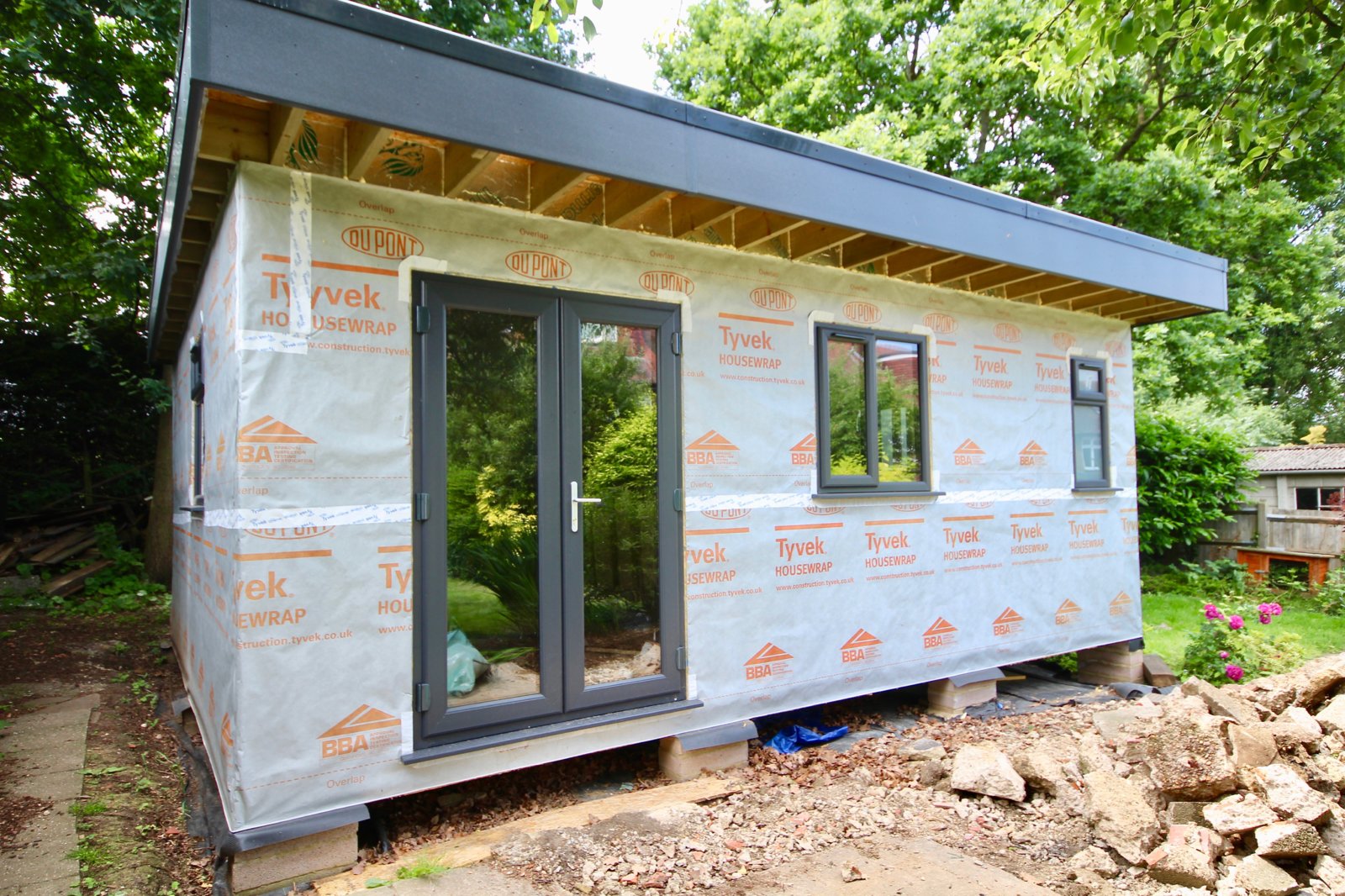 It’s semi watertight and has been since end of October but the tyvek is still on with no cladding but as you might have seen with the last vid, the overhang really helps keep the rain off.