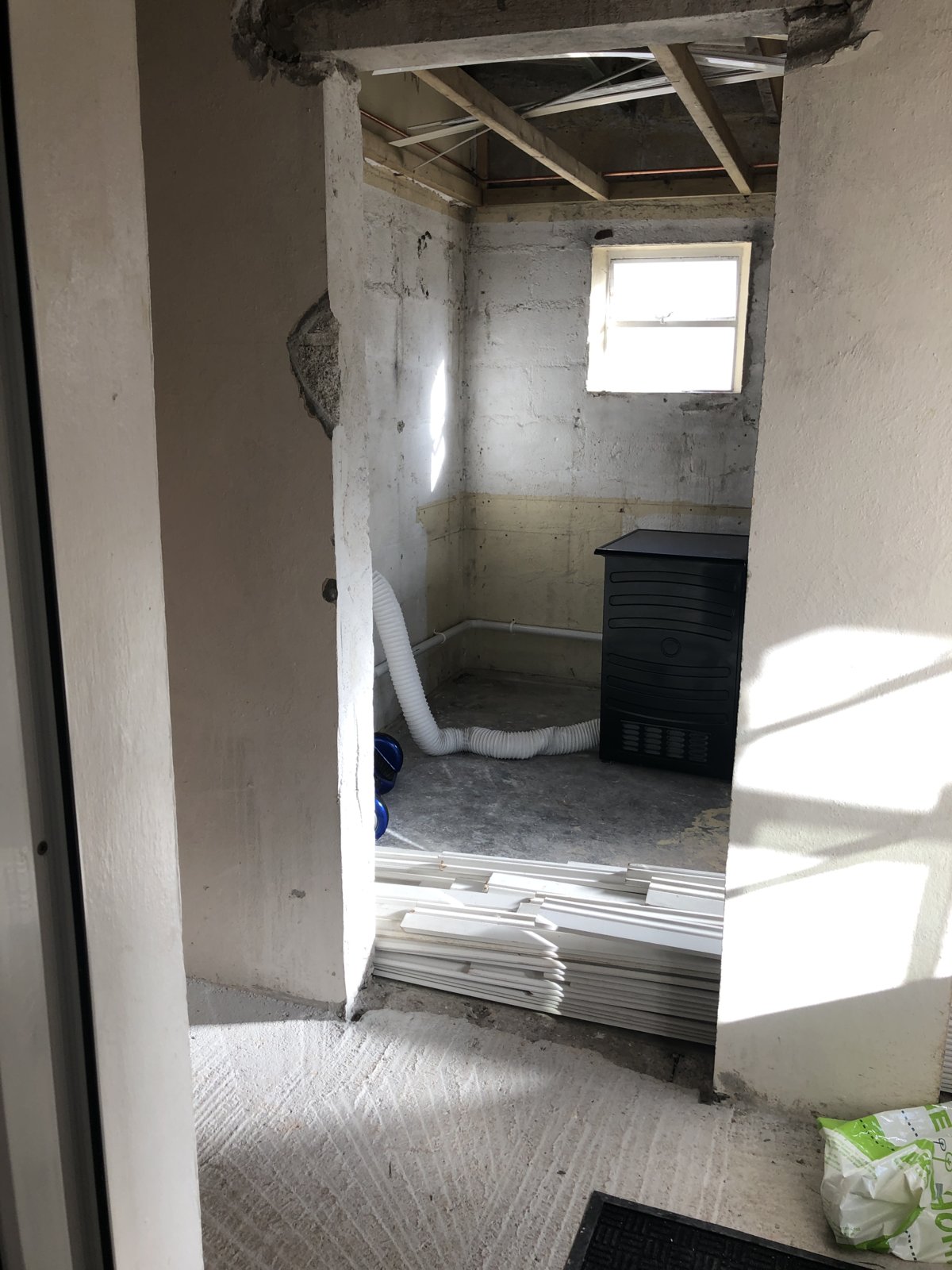New PVC doors and windows being installed on Saturday floor being self levelled the following weekend after that will be stud work on the walls and loads of insolation as would rather loose slightly more space and it be warm and Damp free