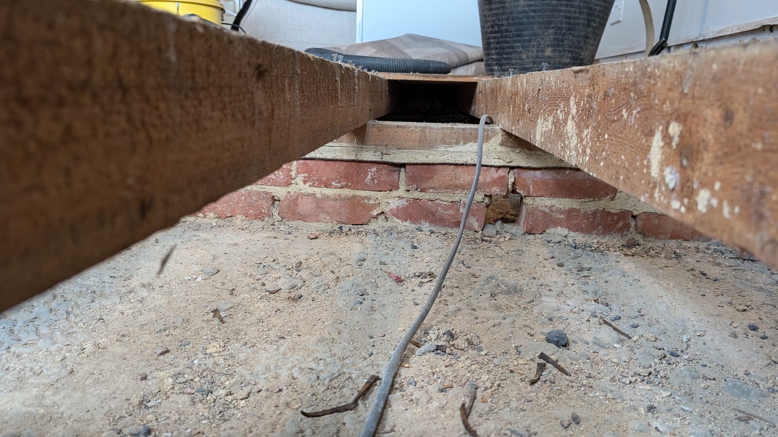 There are holes in places where the brick hits the concrete base but I'm concerned these aren't enough. Would cutting the beam in places be advised of should I leave well alone?