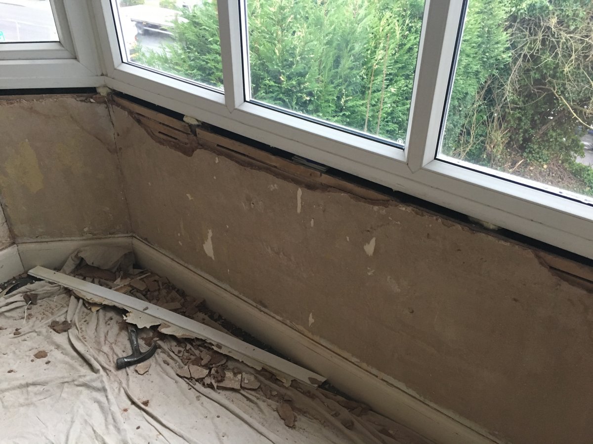 New windows are just being fitted and the plasterwork (lathe and plaster) is shot.