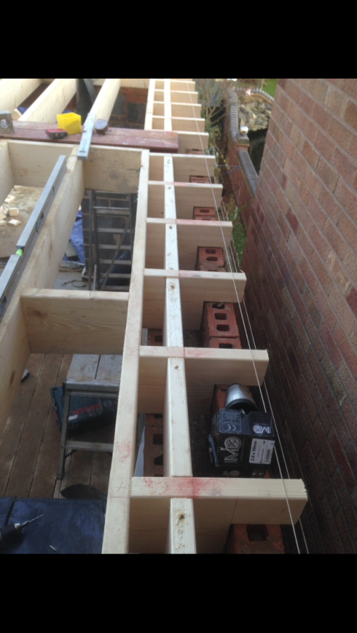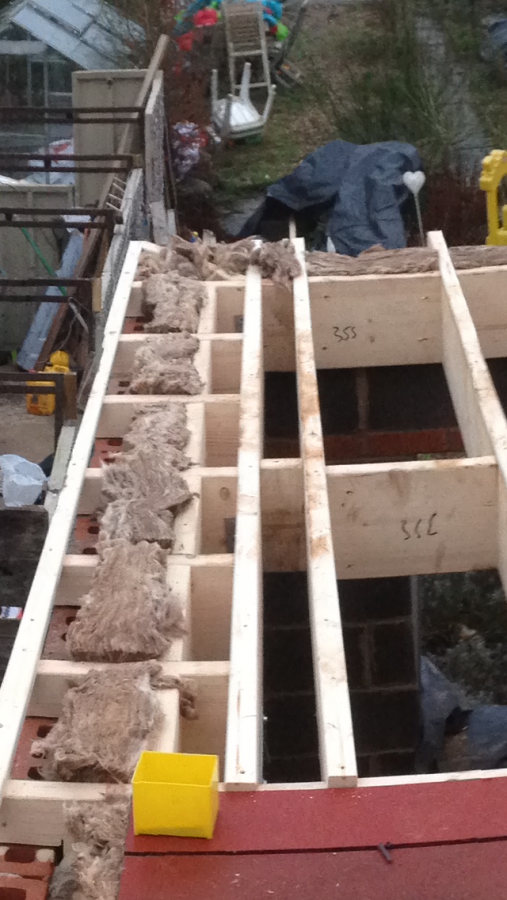 I've just done my first flat roof and I've left noggins to pick up the Fascia's where the joists run parallel to the wall. The joists overhang at the front also for the fascia. The brickwork is two course higher on the outside so I could have a smaller fascia board by the time the warm roof is finished. I have put insulation in between where the cavity should run up to the deck but should I back fill above the bricks also behind the fascia board instead of bricking in between the joists. I am a bit bothered by condensation.