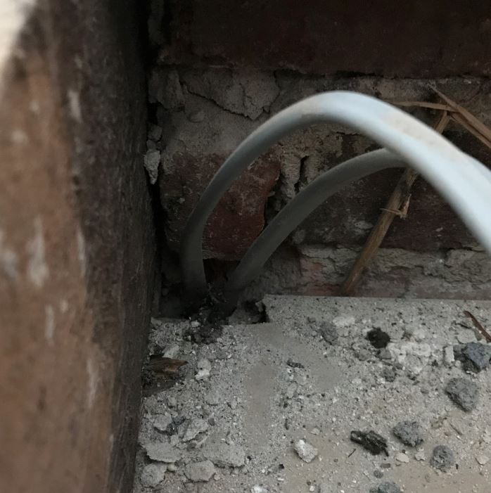 The cables run across the top of the joists, above the insulation but at some point will go through the 4" (100 mm) insulation. In other words 4" of these cables will have installation on them. Haven't taken up the floor where the cooker wire is yet, but I imagine it will be similar to the immersion heater.