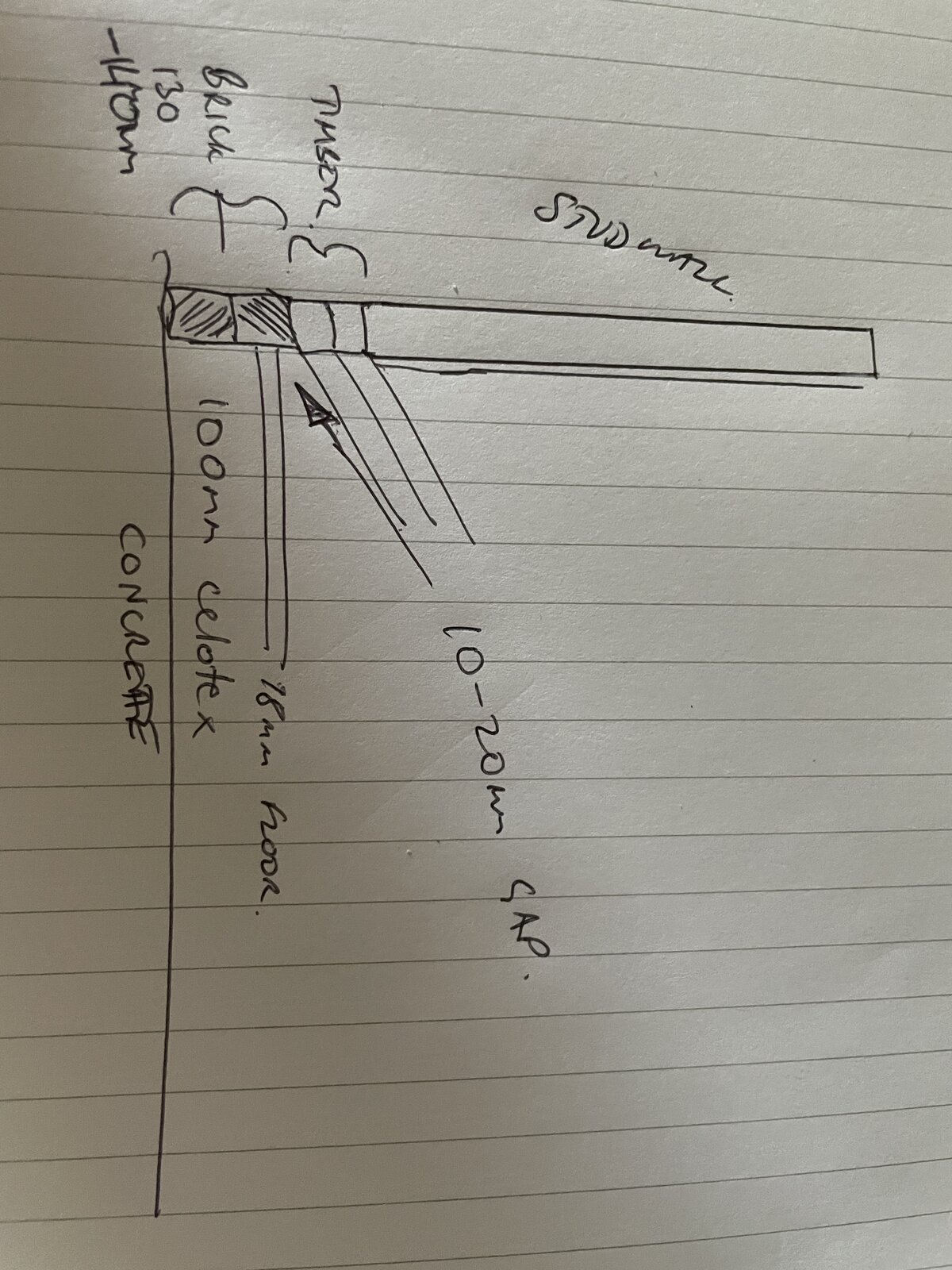 I’m planning 100mm insulation and 18mm flooring on top of the concrete base as a floating floor. this leaves me 10-20mm short of the timber wall plate. Hence I’ll be mounting the skirting 10-20mm over the brick.