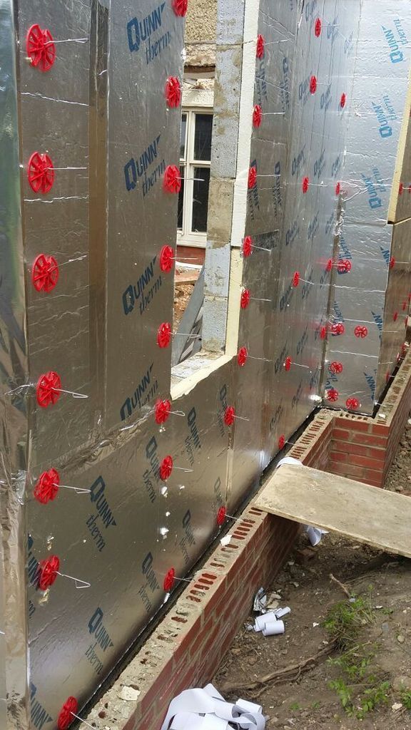 Builder has chosen solid insulation to put in the cavity wall of new extension. See photo below.
