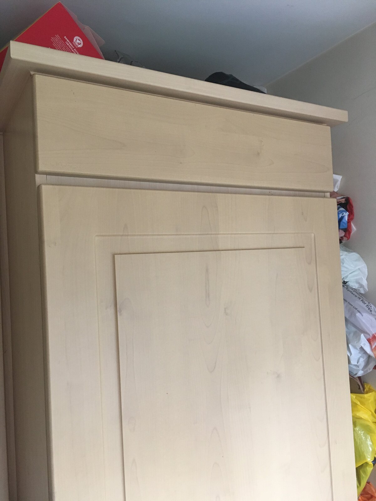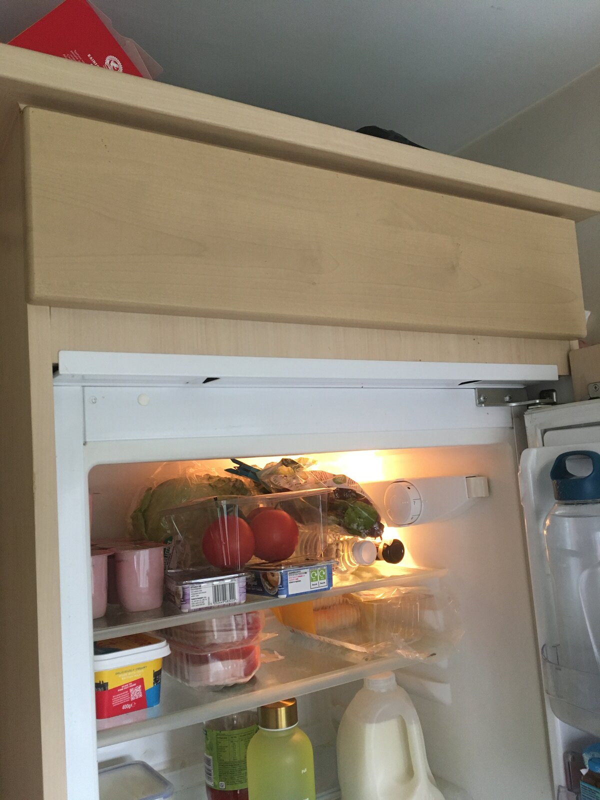 We need a new fridge freezer and the one we like is slightly taller than the space where the current FF is (I think most are these days). Above the FF there is space but there is a template piece of timber on top of a flat piece, but I don't know how it's attached!
