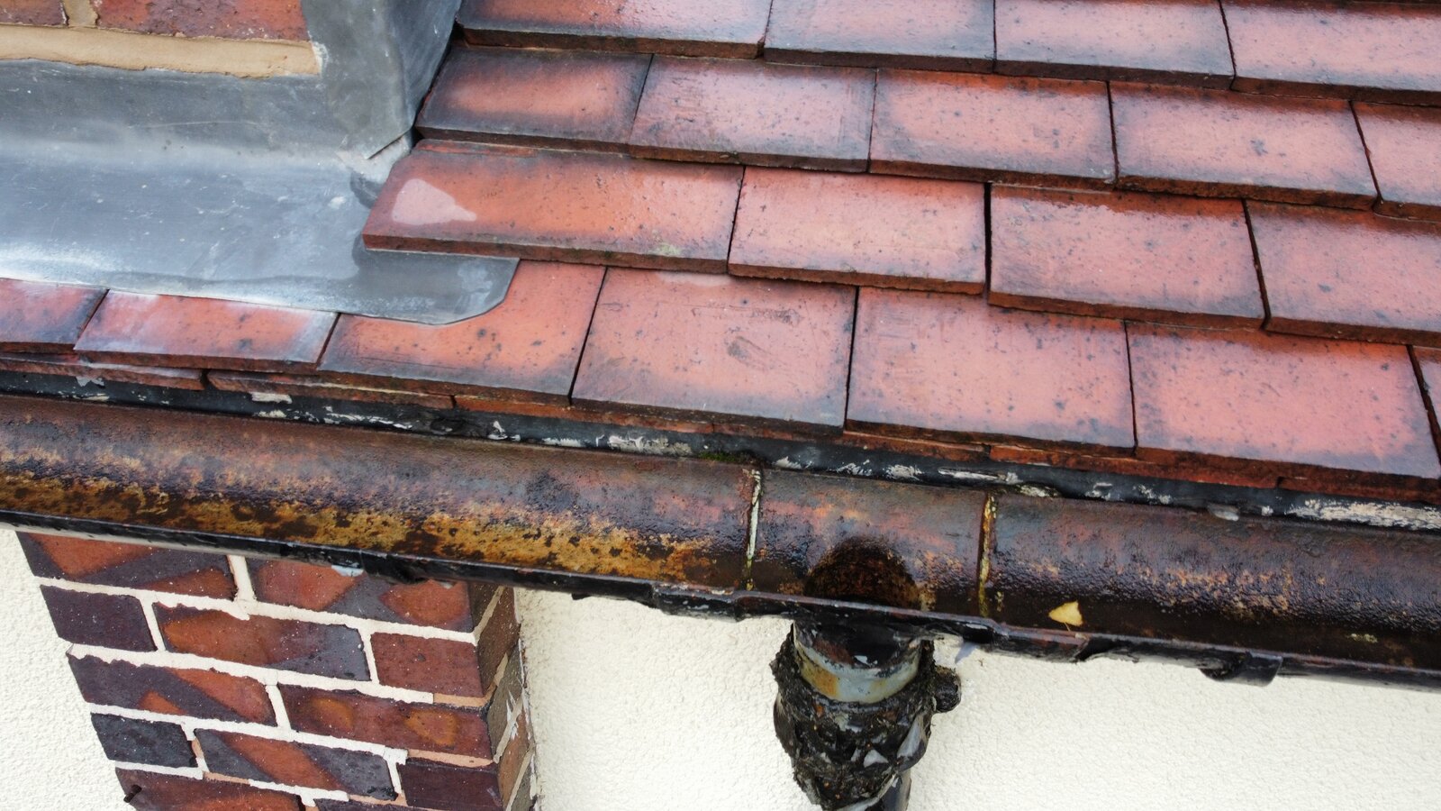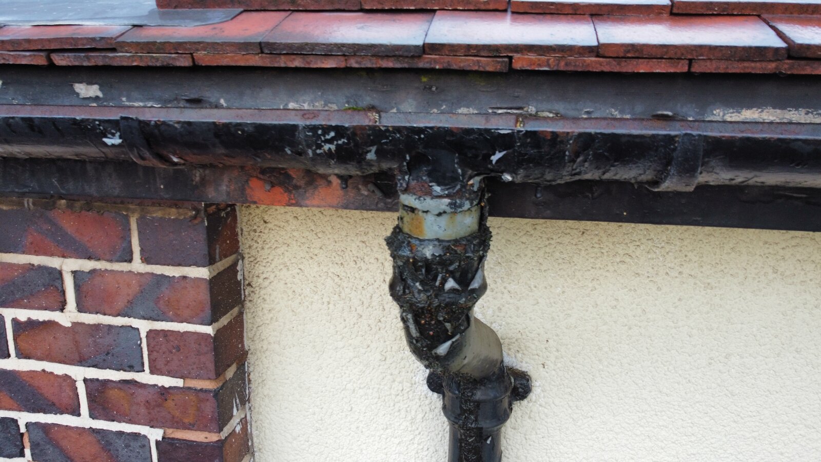Hopefully you can see from the picture taken from the ground that light can be seen through what looks like a previous patch up job.