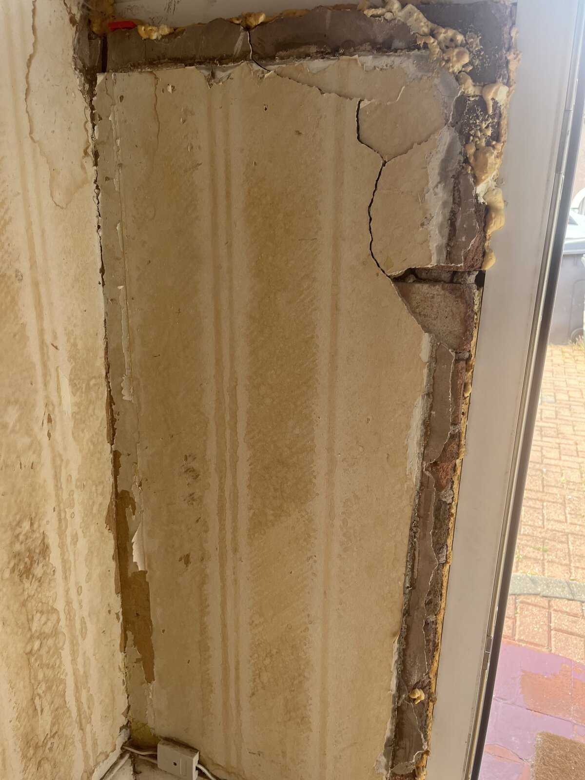 I have an interior/exterior inner porch wall, housing the front door and side windows fitted a few years back, by the cowboys at a deservedly now defunct glazing firm.