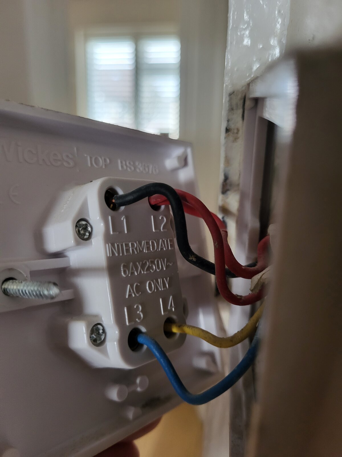 Next step was to replace the switches. I wasn't sure about the intermediate switch as it has L1, L2, L3 & L4 connections and I can't find a like for like switch. I can only find L1, L1, L2,.L2.