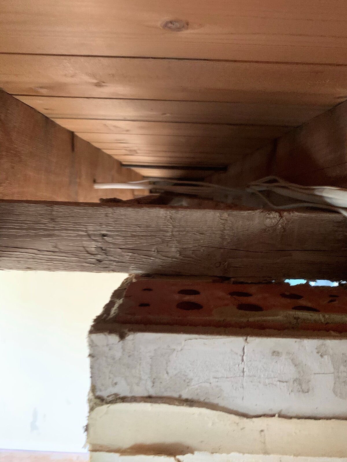 As you can see from the pictures the wall does not have any joists bearing on it.