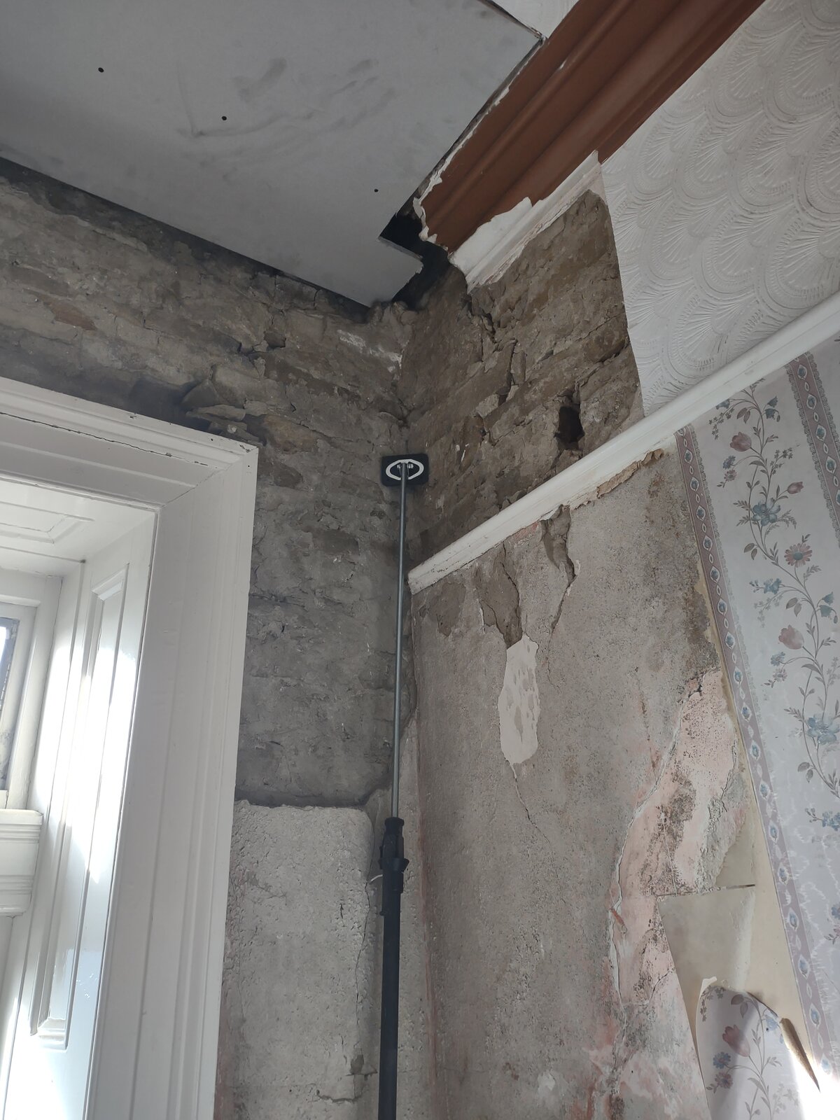 I have a Victorian property where all the walls (internal and external) are solid stone with thick horsehair plaster/ lime and multiple layers of wall paper. Some of the external walls are quite damp as the previous occupants never did any work to the property, neglected the pointing and the roof, resulting in lots of leaks. The internal walls are all dry, but on removing the wallpaper, a lot of the existing skim and plaster has come off so I have decided to remove it completely.
