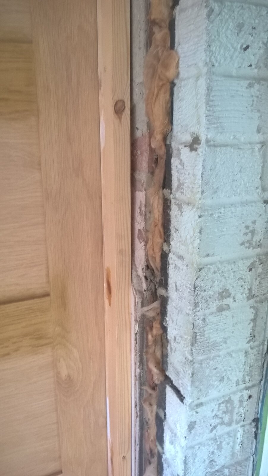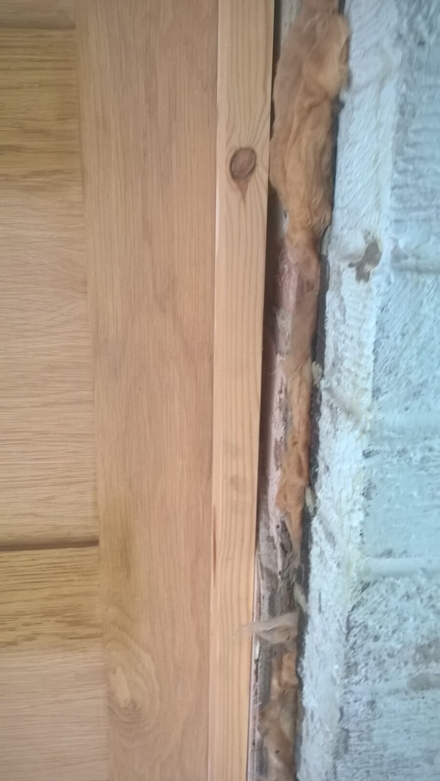 The door lining is 35 mm and we have 37.5 mm insulated plasterboard (25mm celo plus 12.5 mm pb) which isn't foil backed.