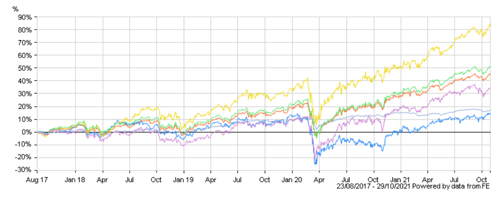 Index funds for the last few years - that's the yellow one. That's the sort of strategic decision you can afford to take and review, pretty infrequently. IFA stuff.