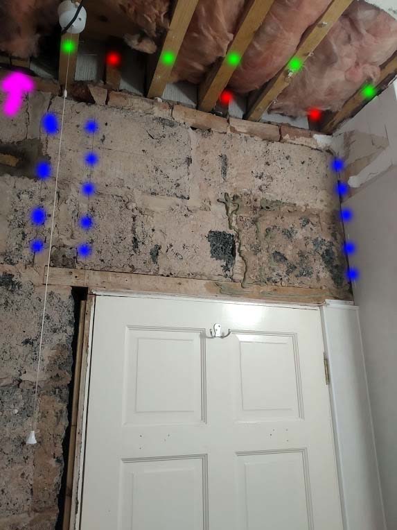 Just on the left edge I have marked in Pink the double joist that is the main support for the stairway... Obviously the intent is not to go anywhere near that.