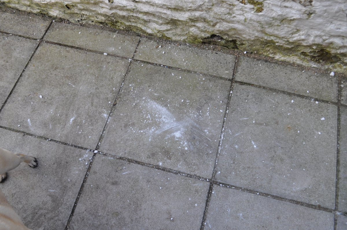 This morning I got up and found a lump of 'something' on the ground outside our back door. It was white and when my partner picked it up it crumbled to dust in his hands.