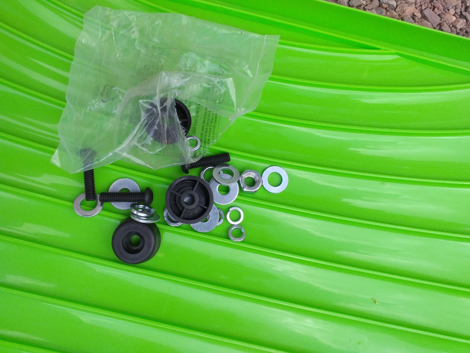 Got a universal mitre saw stand. The arms which come out the end seem to be level on top of black thing rather than it being a stopper. Also had lots of screws etc with kit but I only have four holes on saw so just used four of them.
