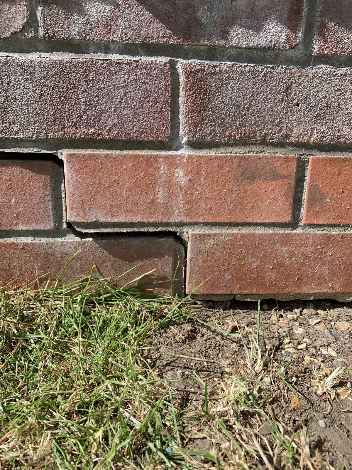 It looks like the foundation has risen up and it has pushed the brickwork out of alignment. It wasn’t like this when it was built.