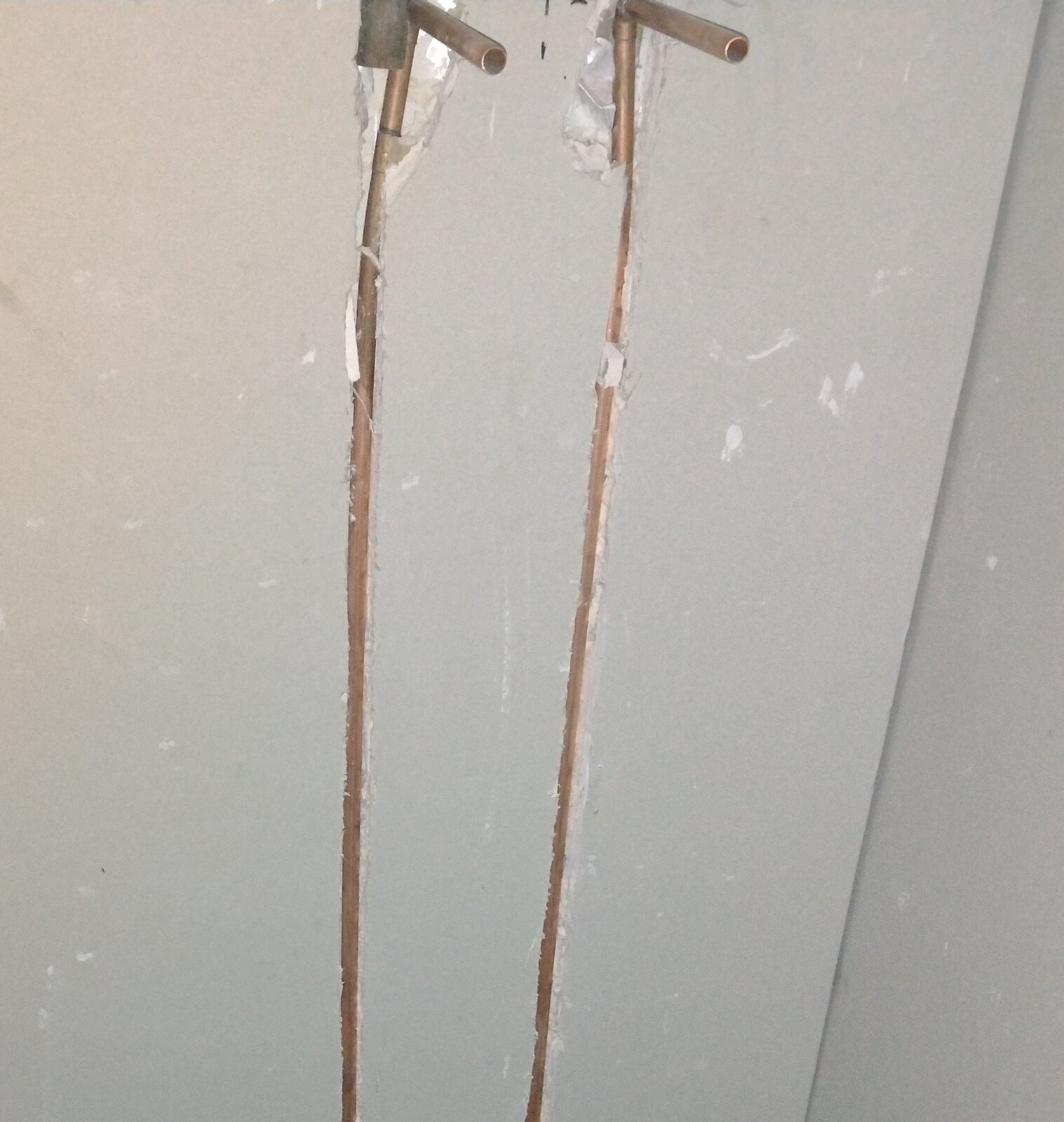 The plumber appears to have made a mistake regarding the distance between the two pipes..