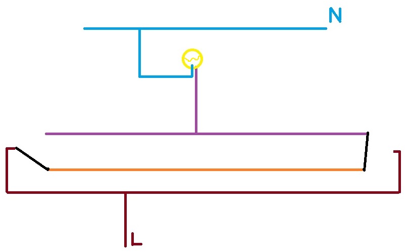 - a line/live connecting both switches (daisy chained to other parts of the circuit so cannot be switched on and off without impacting other lights elsewhere)