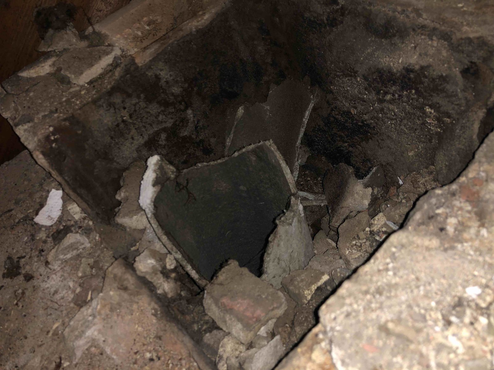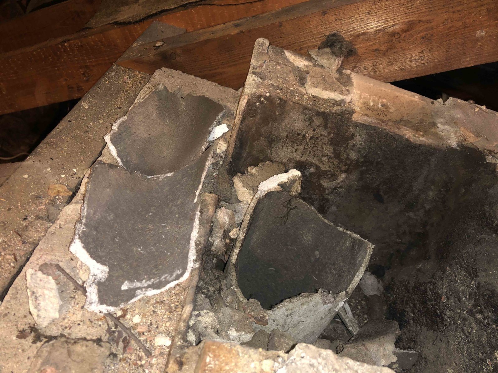 looks like the buliders broke it and left the bits in the chimney - not ideal...