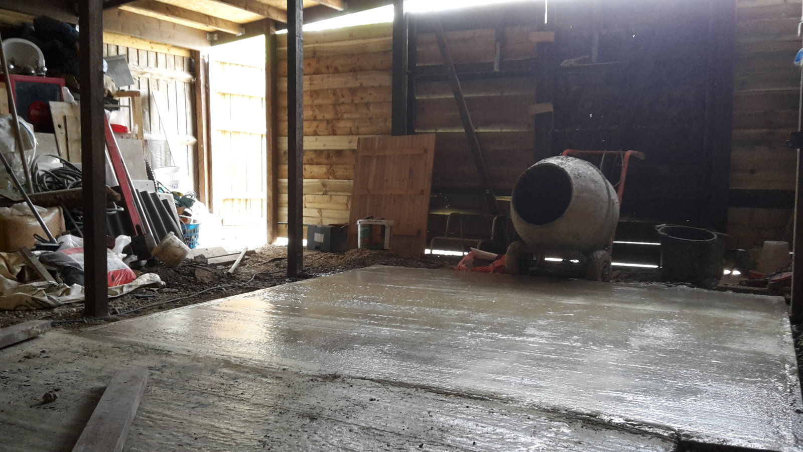 I am working on a few interconnecting slabs presently all 2.4m by 2.4m and doing one every other day. I have found it easiest if I just load the mixer dry and then add the water until it overflows from the mixer into the concrete form. I never actually tilt/pour/lift the mixer once. It just slumps out and I rake it about. Kind of like an auto pour feature. Has anyone else used this method? It seems to work well and as a one man band doing this work it helps speed things up alot. A 2.4m by 2.4m 4inch slab takes me roughly 2hours.