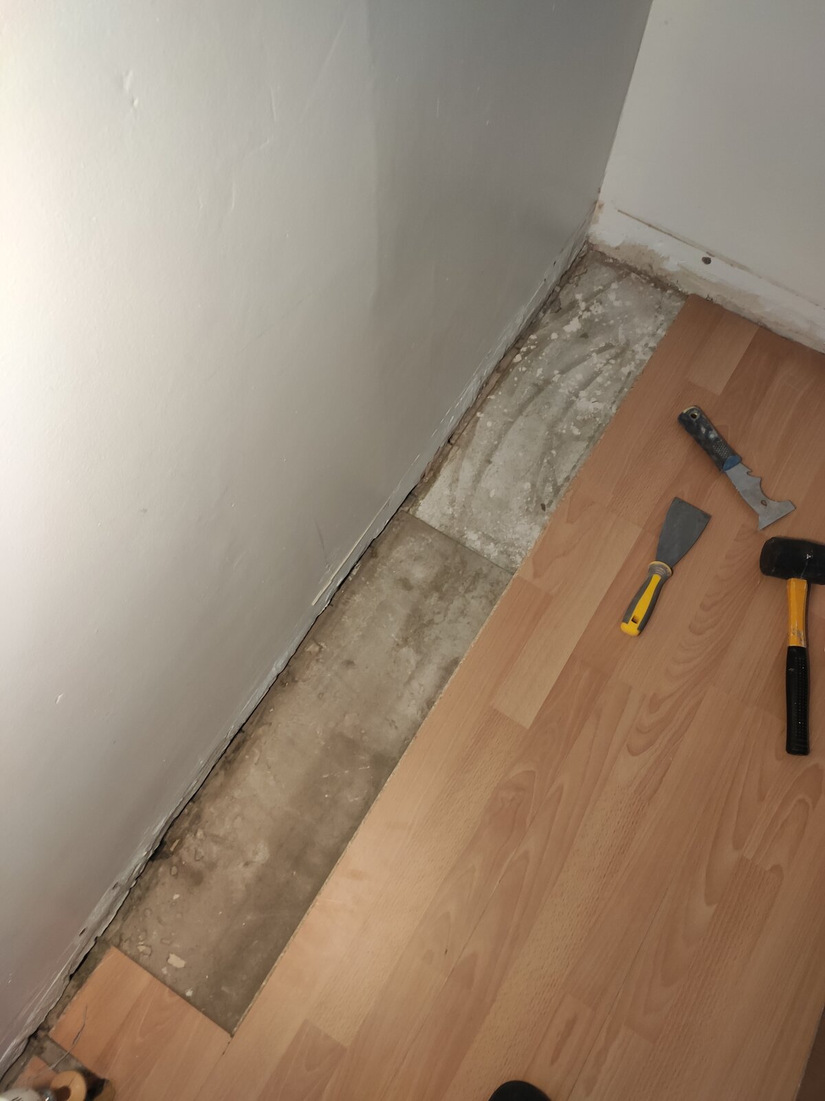 I am investigating a dripping sound coming from under the floor and I've started to pull the laminate up.