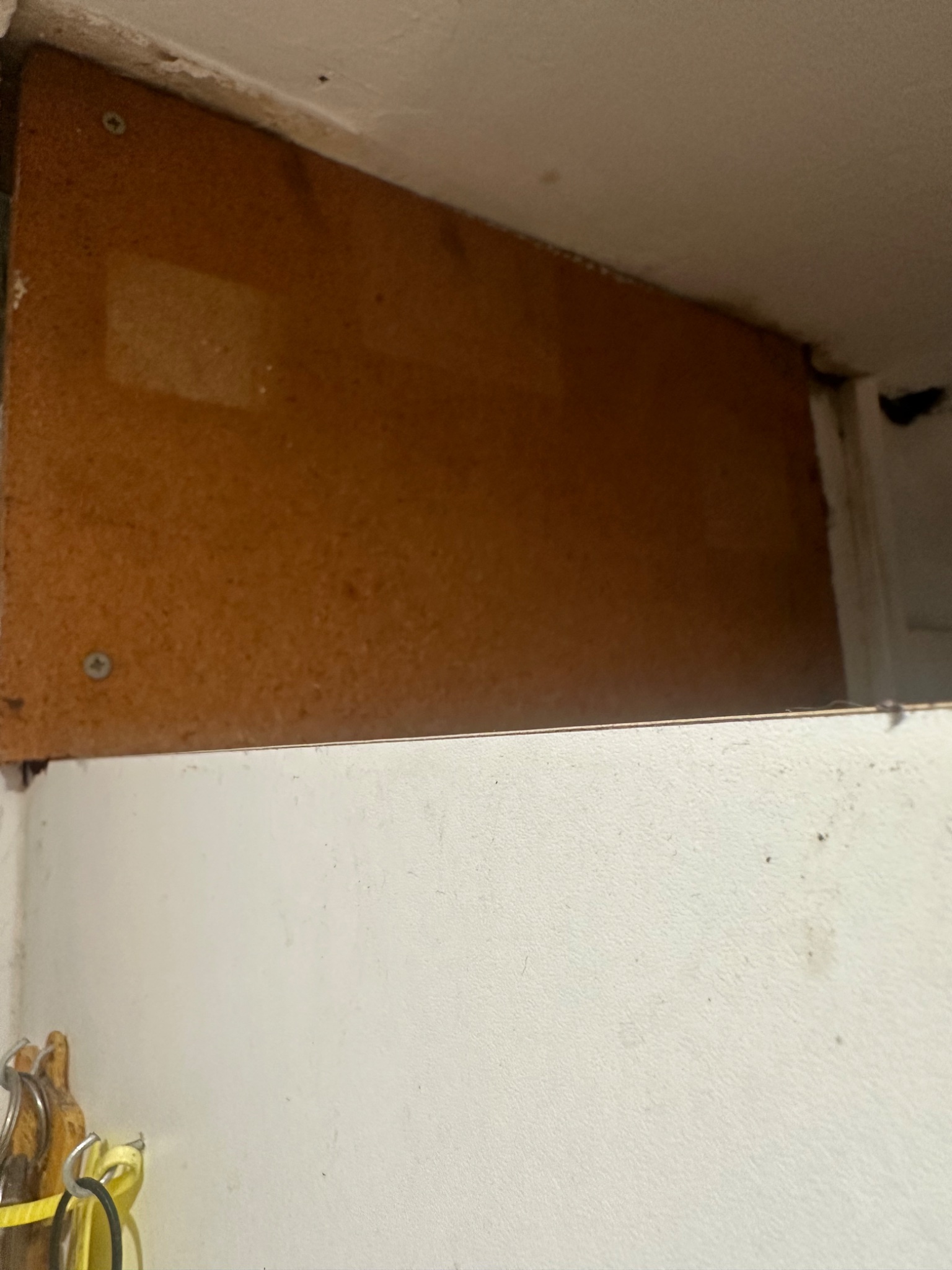 Hi, please excuse this if it’s a daft question. This piece of board is above a cupboard in my kitchen. I think many moons ago (this is my childhood home so roughly the 90s ) there was an electric meter or fuse board in a cupboard where this is now. I don’t remember it being removed or that board going up but since buying the house we are finding all kinds of weird and wonderful things by dad did in the past. Is this just chip board or is it likely some kind of asbestos board the meter would have been attached to?
