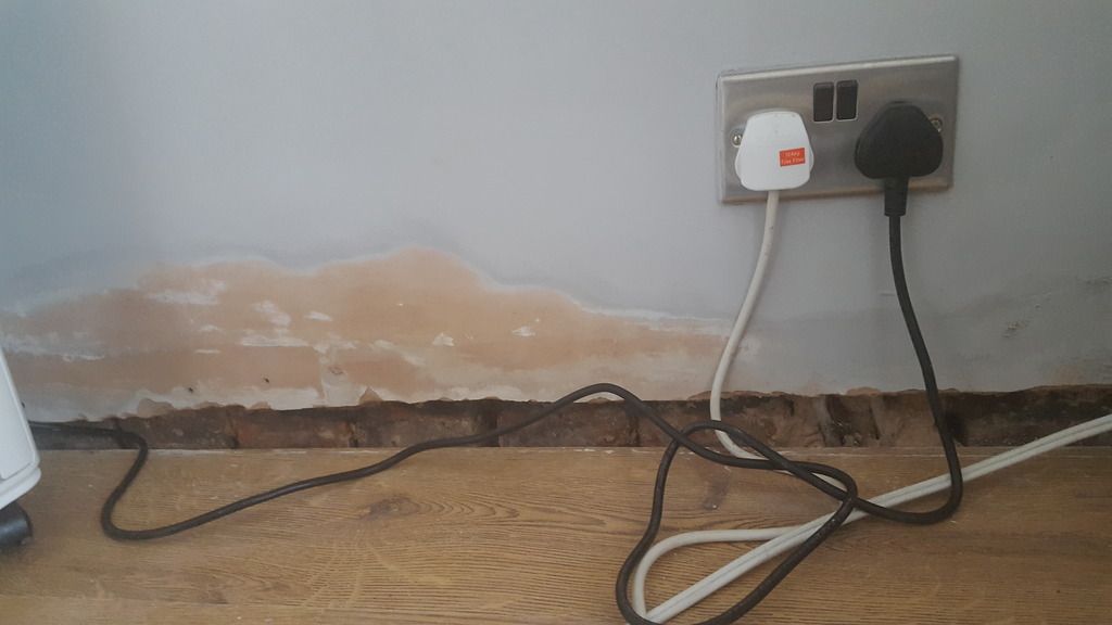 I have sanded the paint off as it just looks darker like it is wet? When it was plastered it was down to the floorboards so I have nocked it away so it is not touching the floorboards. There is a chimney breast on the right hand side but on the left it's the wall that connects to my kitchen. I don't think it's rising damp as it's not an external wall.