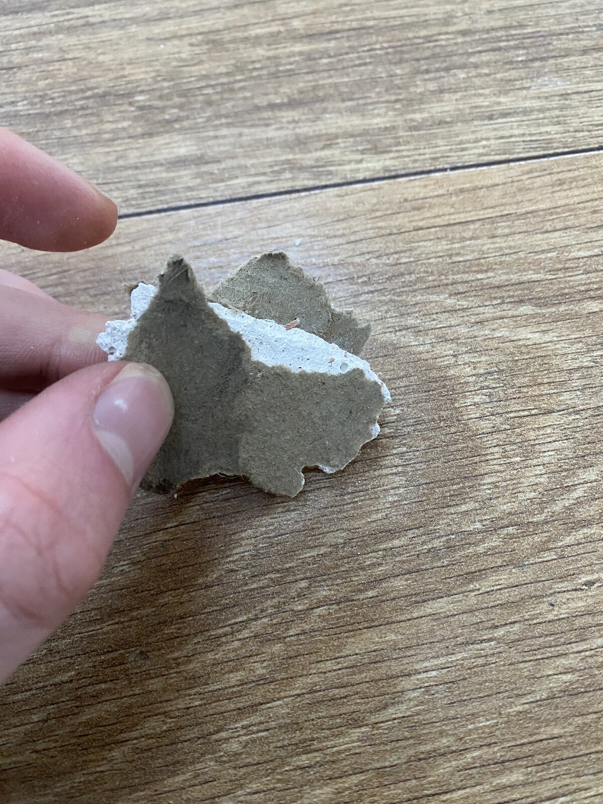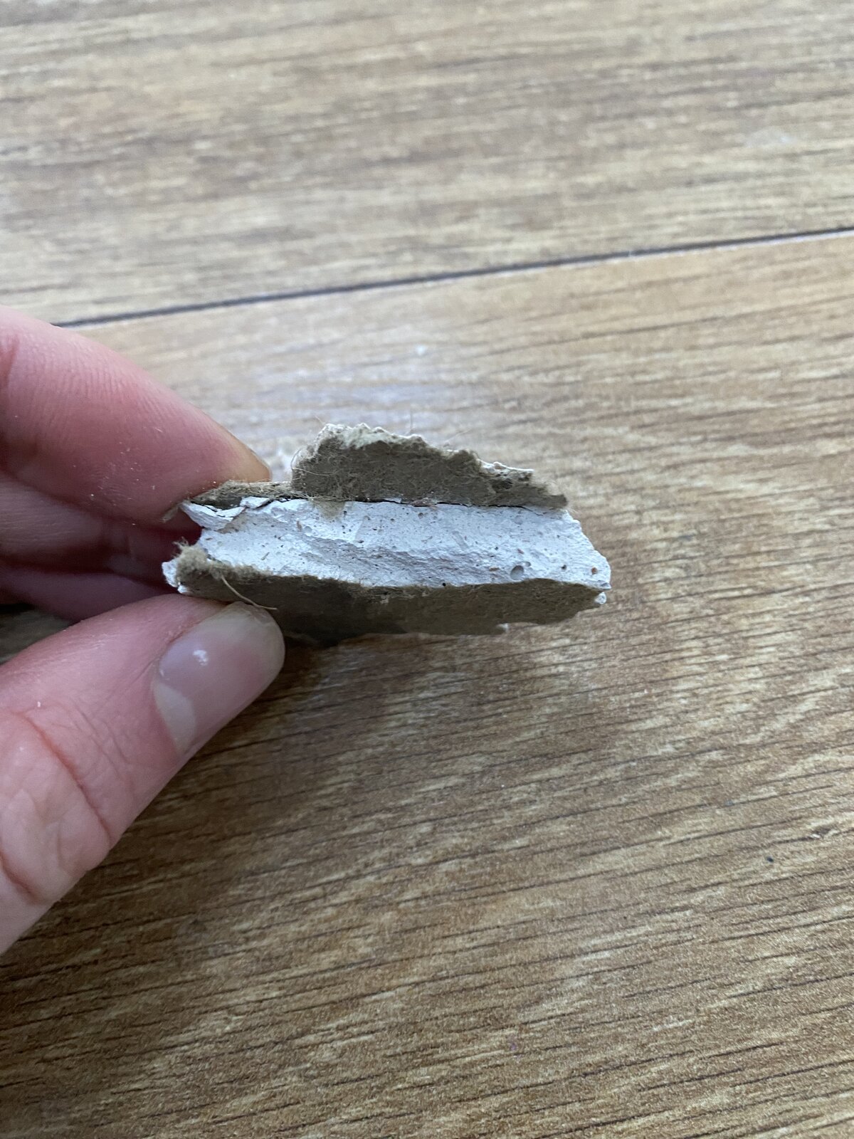 This is a sample of what I think is an old plasterboard taken from a ceiling board under the stairs. Also have similar boards on the walls under there, and they have been skimmed and then wallpapered.