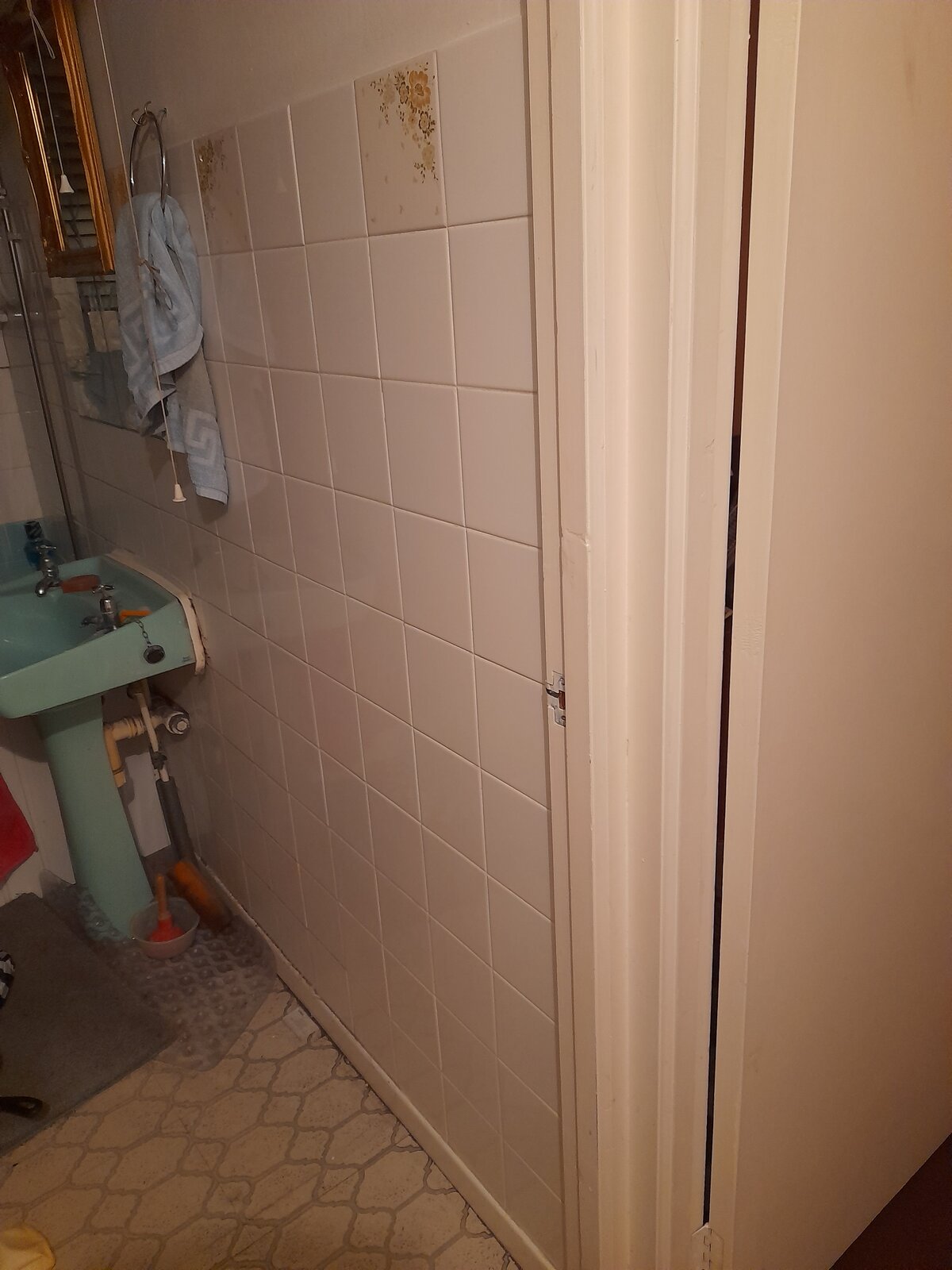please stand back and take a wider pic of the entire room, and for the other side of the wall too. put something to show where the wet marks correspond.