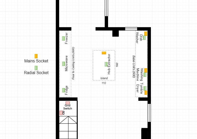 The one thing which is clearly true is that, as flameport has said, to have all the major kitchen loads connected right at the very end of one leg of a ring circuit is not appropriate (and not compliant with regs, either).