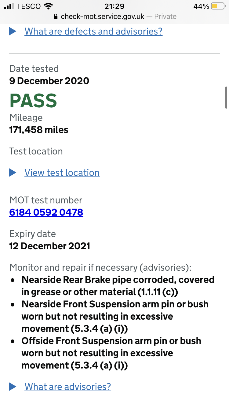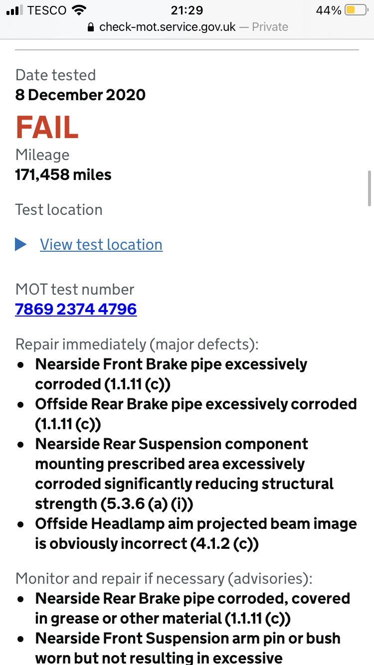 This is its recent MOT report, the seller is going to fix these bits and get back to me.