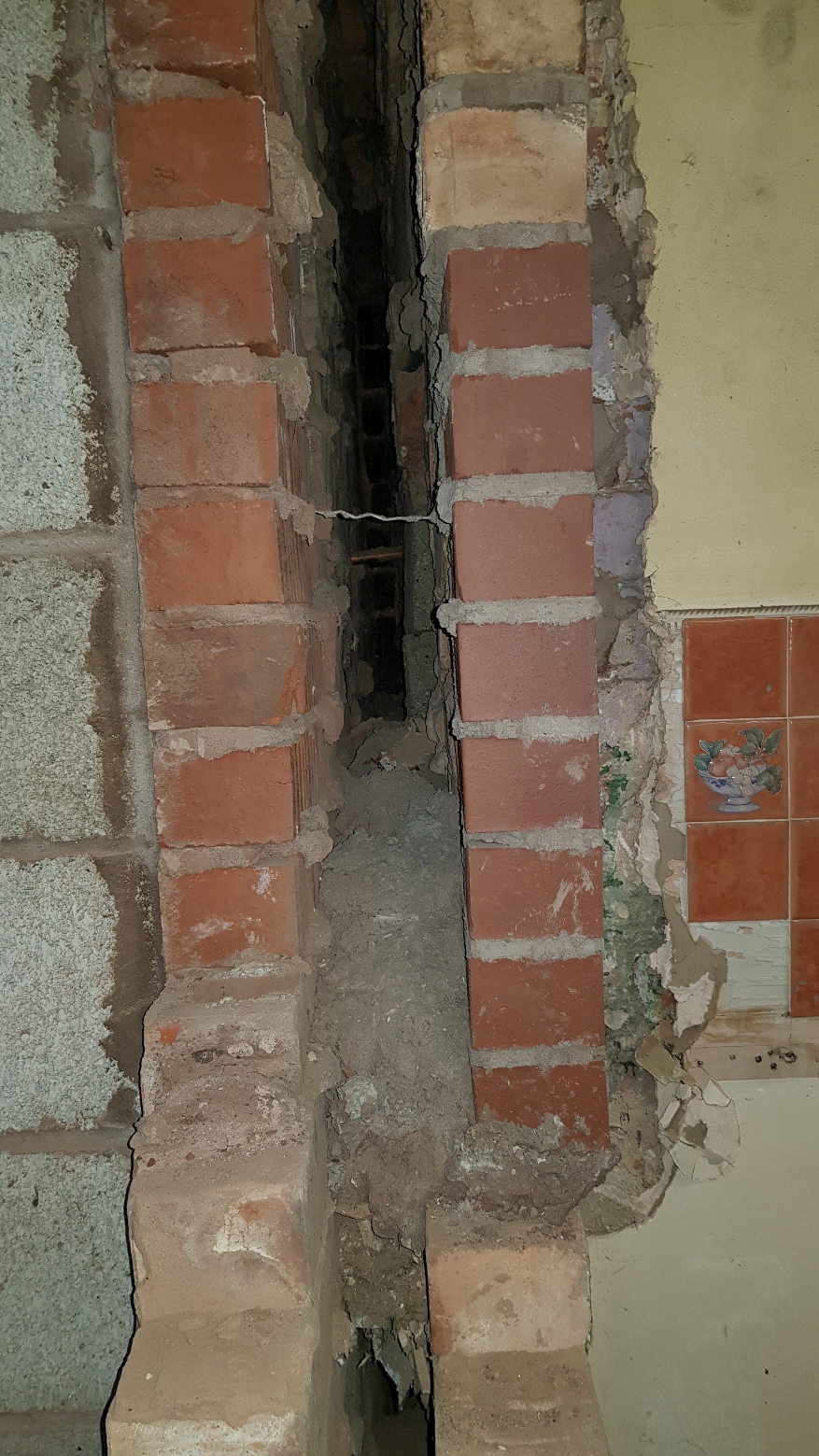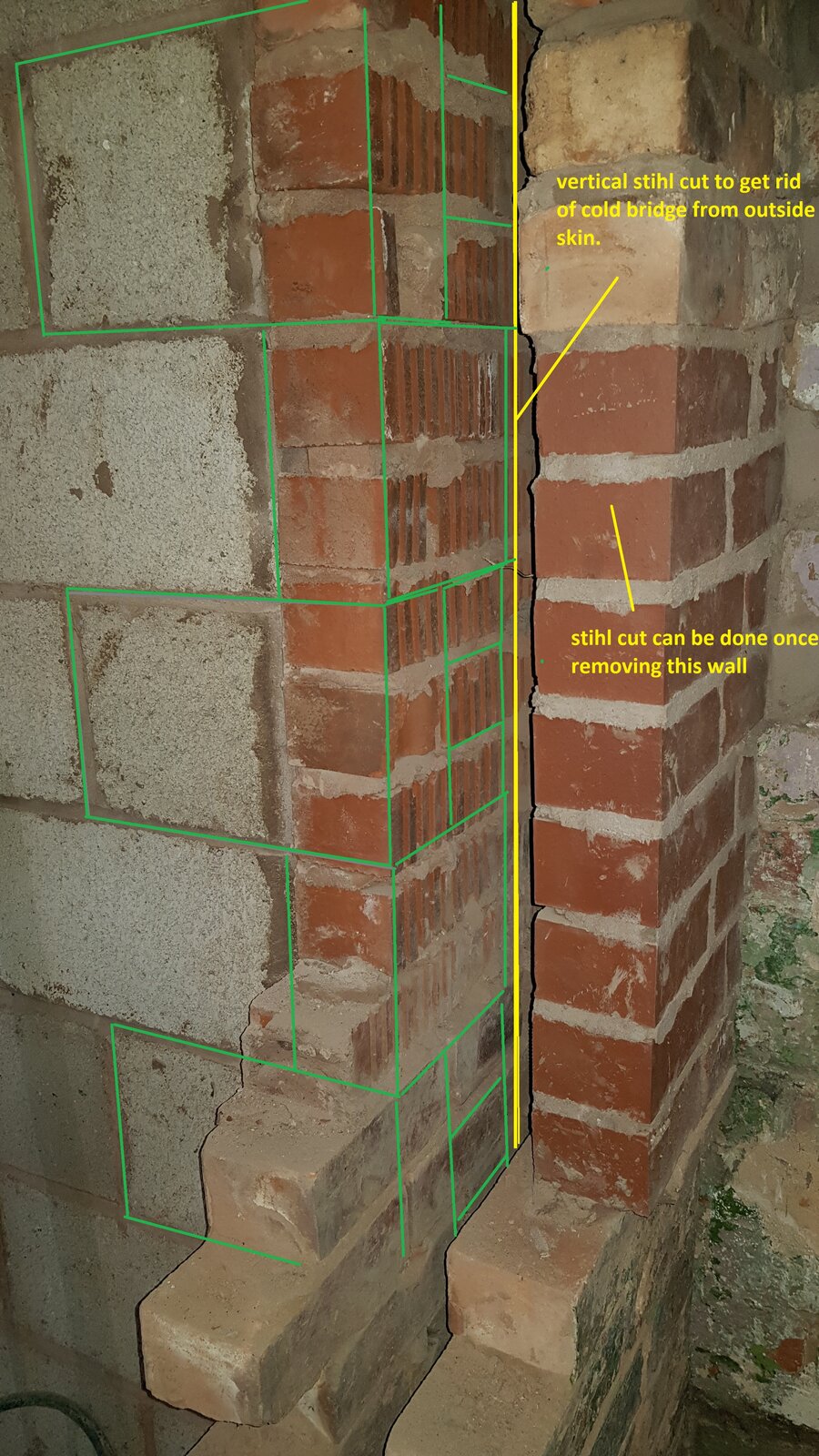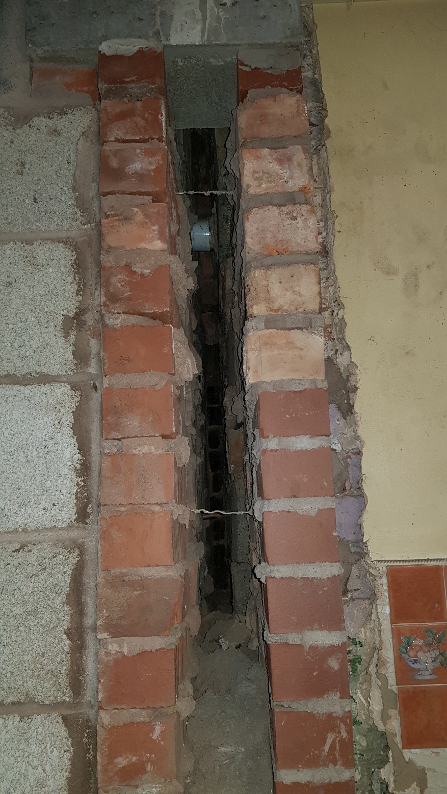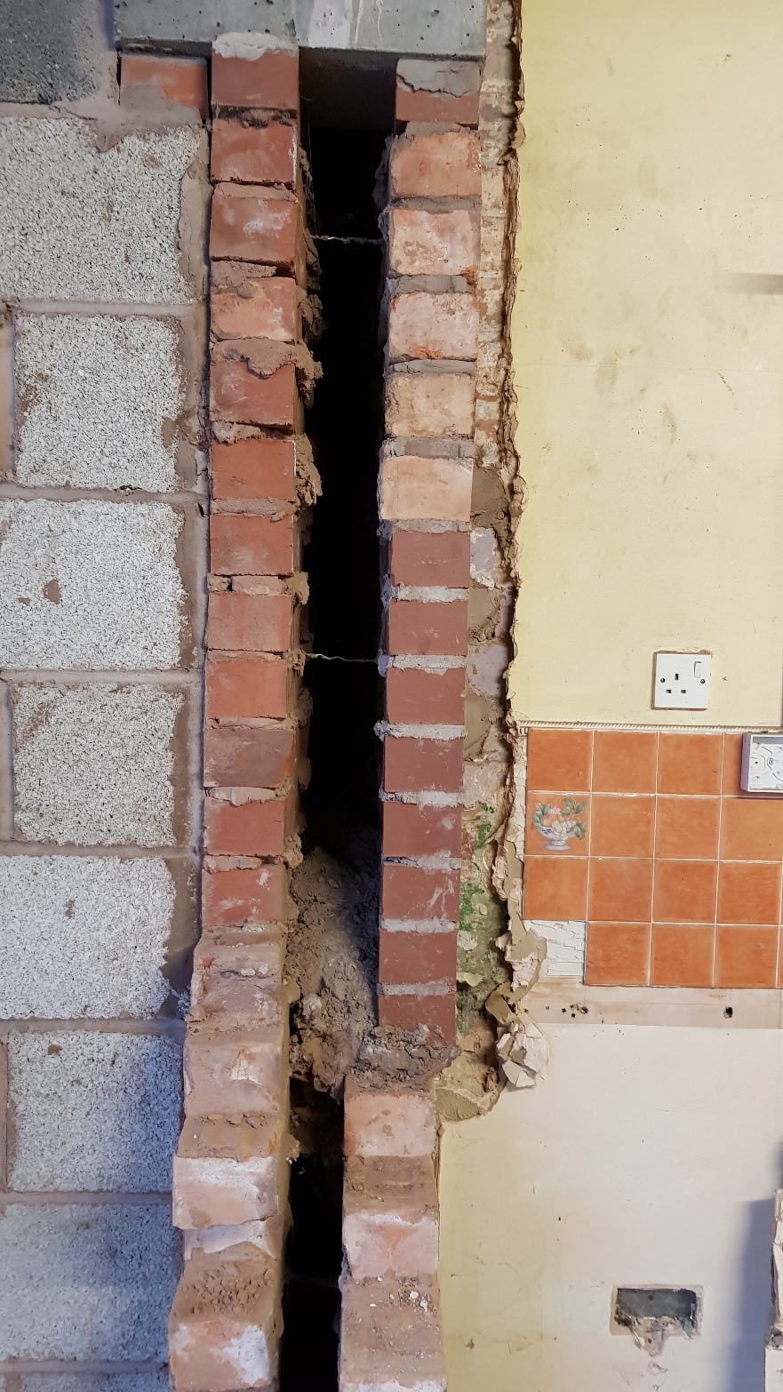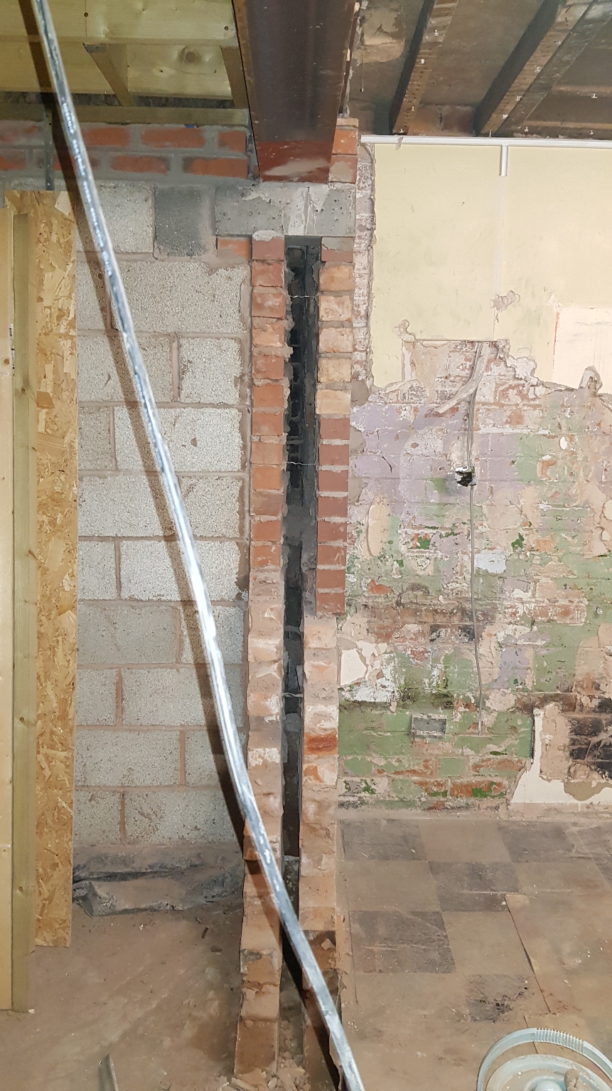 Its a bit hard to explain so i have attached a picture. The wall was also filled with mortar that i have had to drill out and clean the cavity.