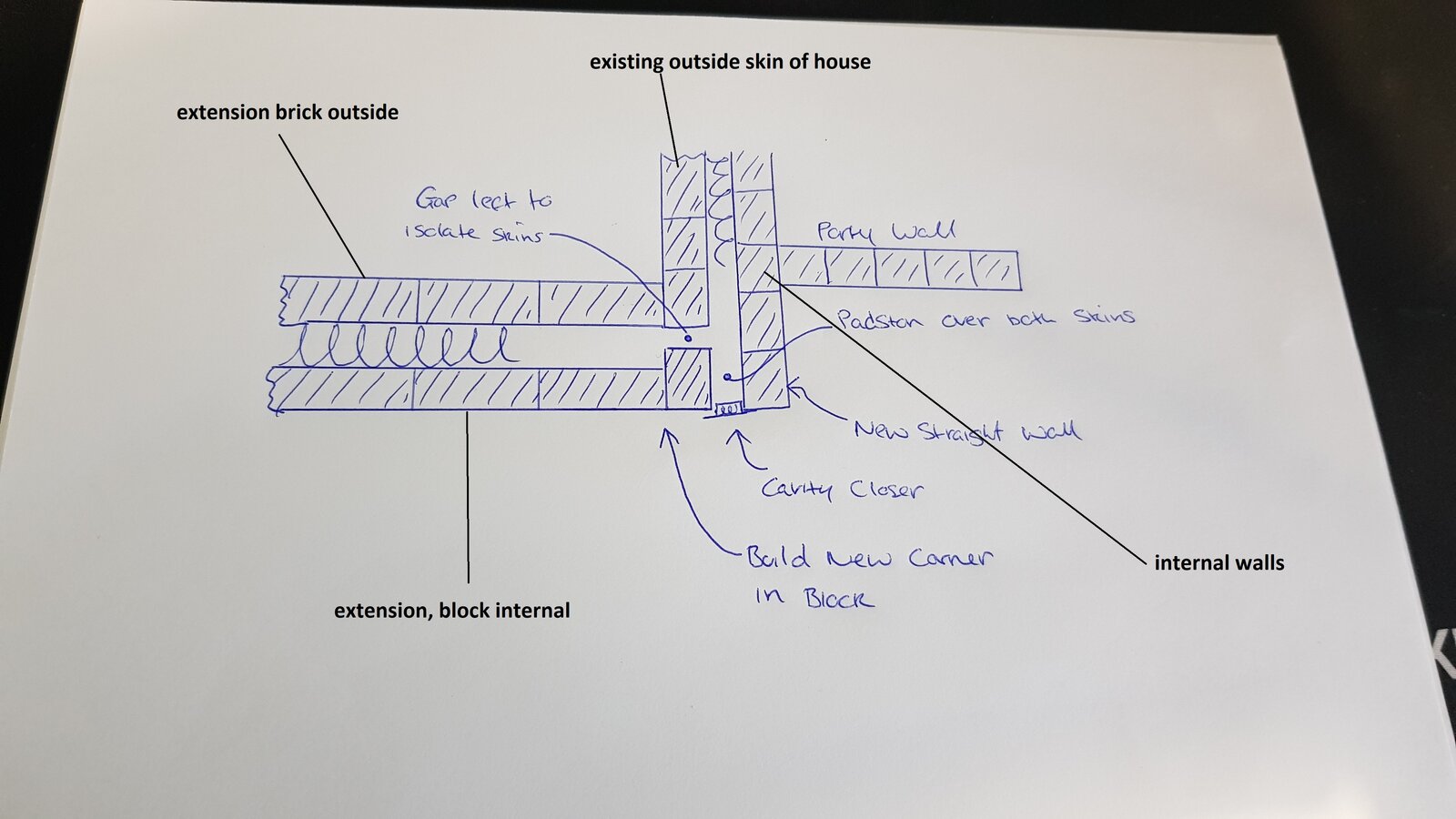 So from what i can tell, the existing cavity gets wider from where they stepped the brick out, but should they not of just continued it up in a straight line, maybe even brick bonded it at the reveal to close and lock the two skins together?