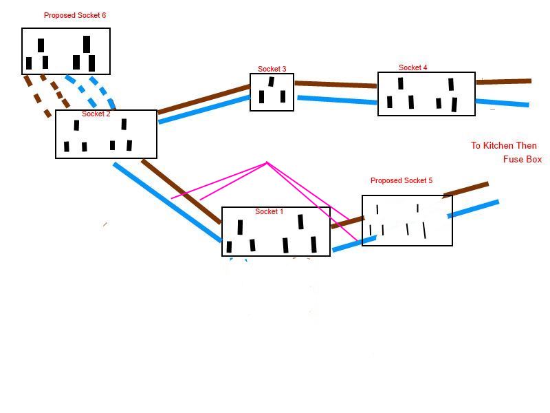 Its probably a stupid question but Id prefer to check before doing anything. I could also spare off both new sockets but Socket 5 is going to be a double socket with USB chargers and Socket 6 will always be used heavily so im unsure if I can do this.