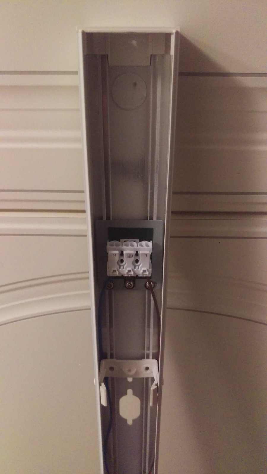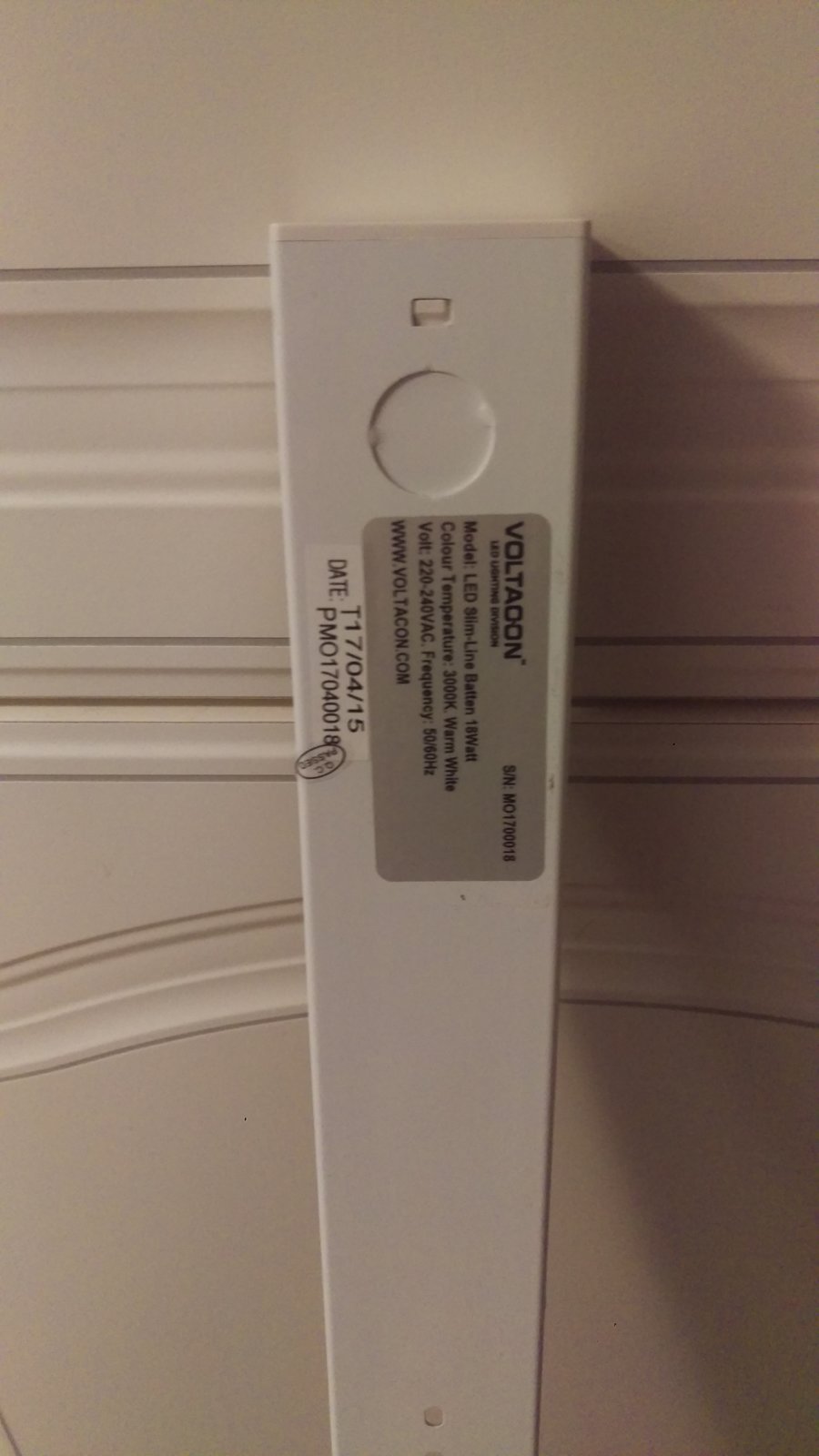 I bought a slim line LED batten which has two holes for screwing into the ceiling. It also appears to have a pre-broken hole for easier access to connect to the wiring.