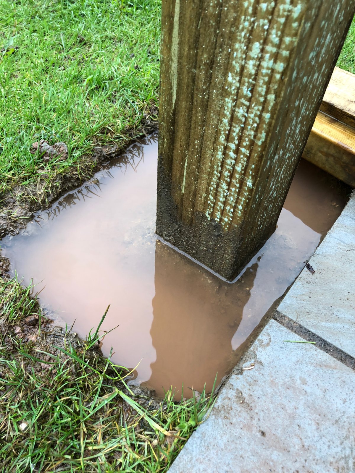 Anyway, will this post be OK with that 1" water around it when it rains? Its treated. Once it stops raining the water will drain away slowly over 24 hours. Although if its heavy rain it can take time as I am on a hill, so I think water from the hill will just drain through my garden, so it takes longer.