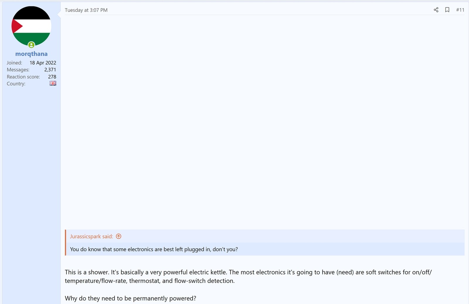 Also, please try to remember that your answer said that the necessity for a shower to be maintained on standby was occasioned by having a display.