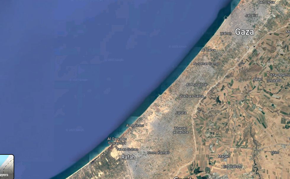 He has such little knowledge of Gaza that he's not aware there isn't any space in Gaza that is not within the civilain population. Everywhere Gazeans are squeezed into the available space. From a satellite image of Gaza.
