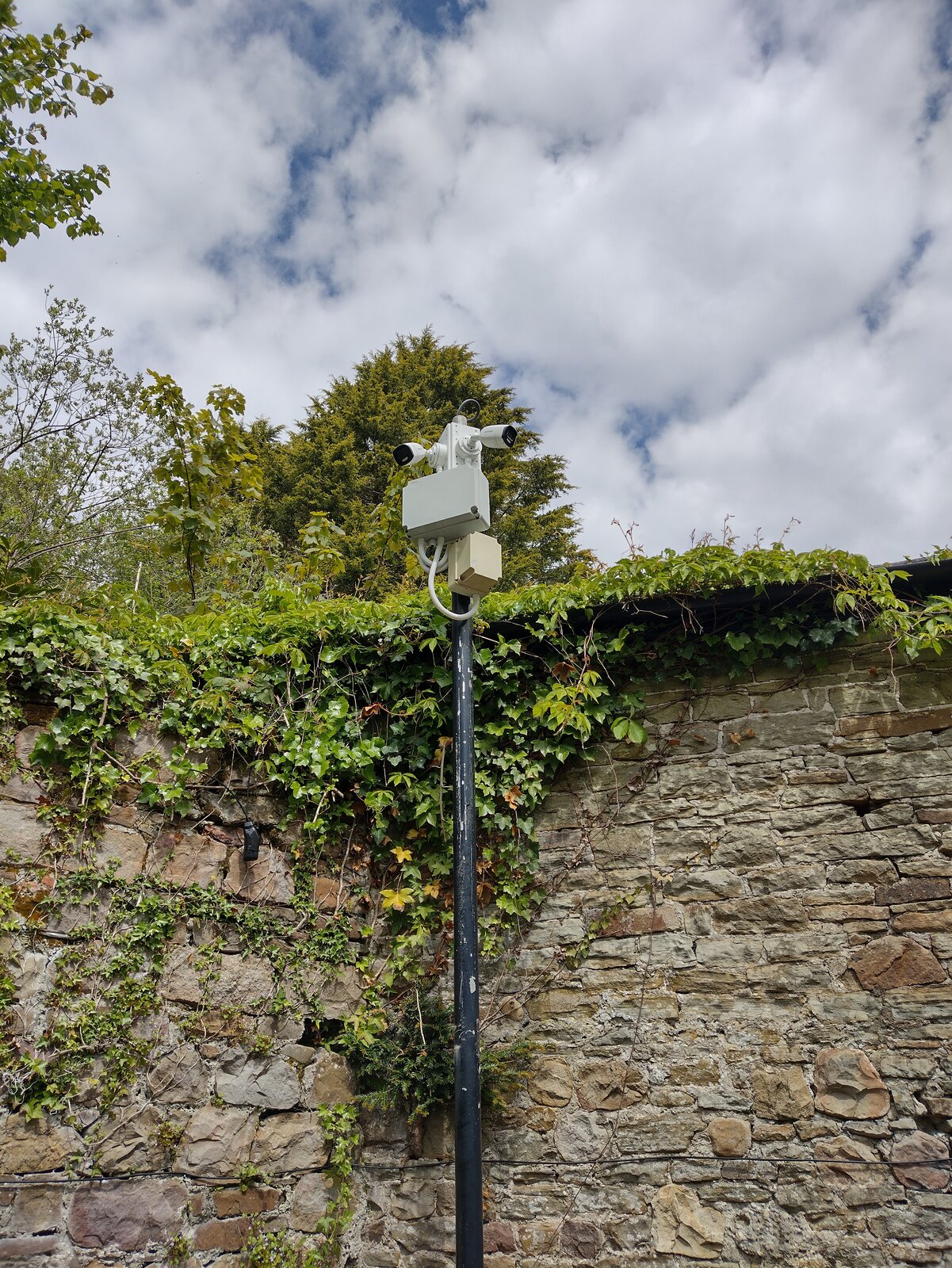 The requirement for the new system was to increase the coverage to 2 x fixed cameras per external pole (12 total) and one internal camera in the same position. A local CCTV firm who we have used previously and have a good reputation quoted me a solution that would use a multiplexer at each column to send two cameras down the one RG59 cable. Ideally we would have replaced all of the cabling but the budget simply wouldn't stretch to this as it would involve a significant amount of civil work.
